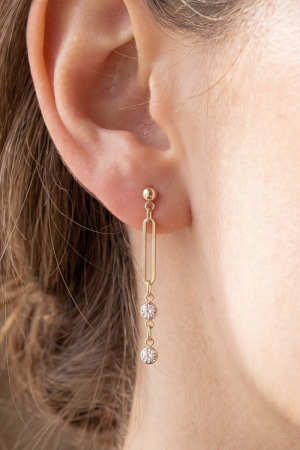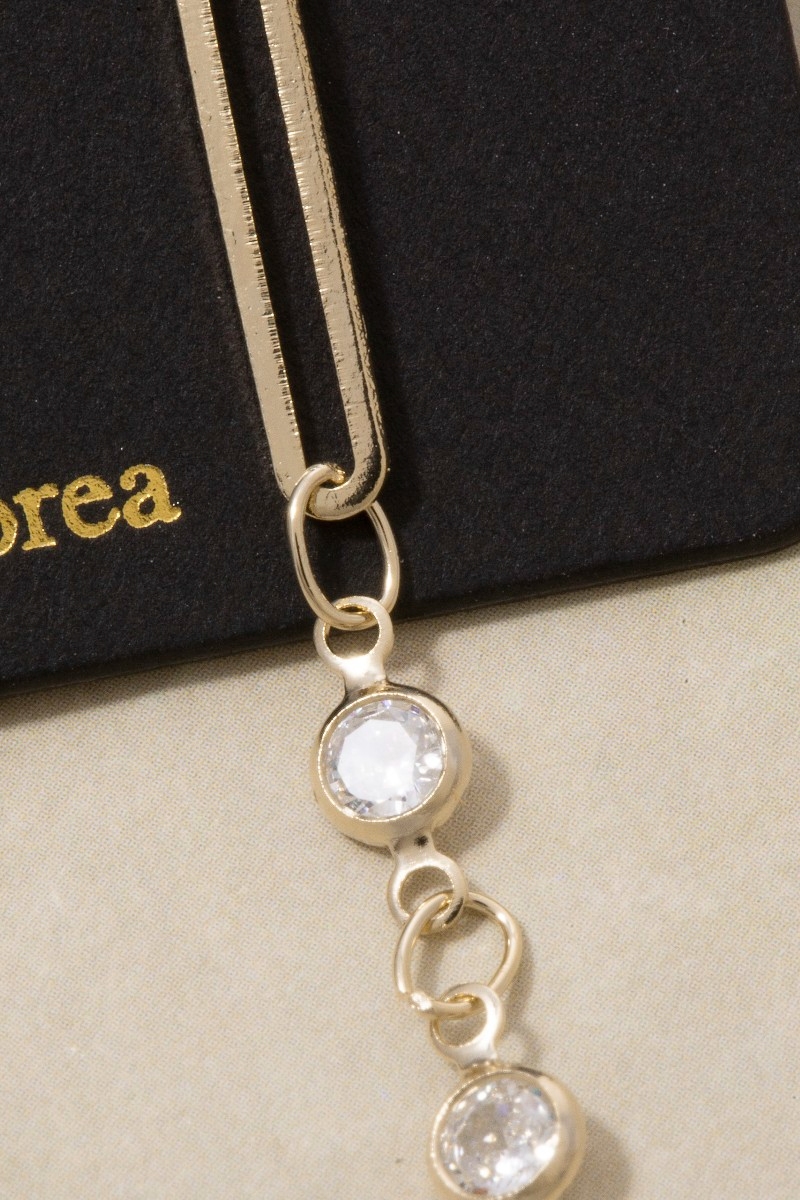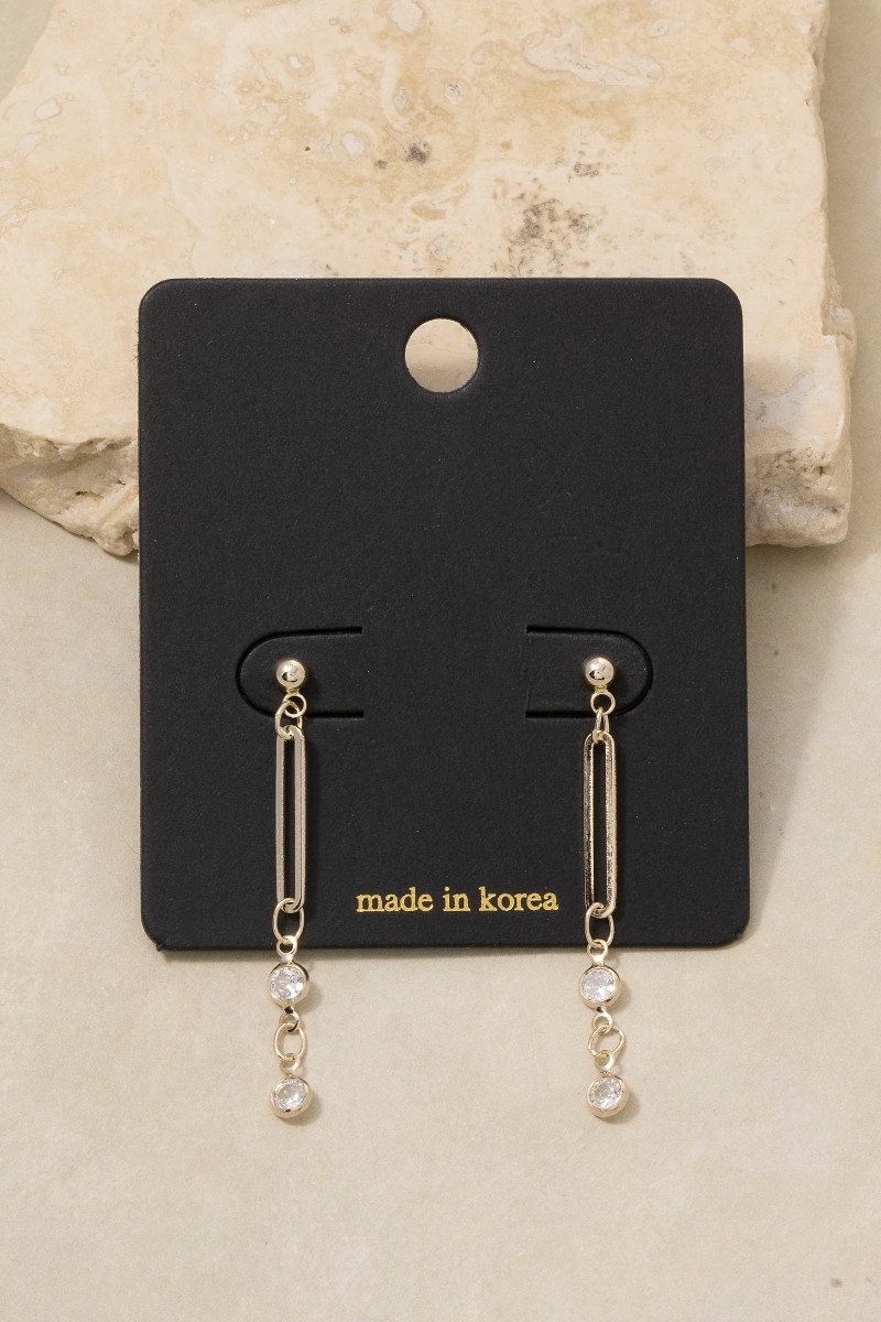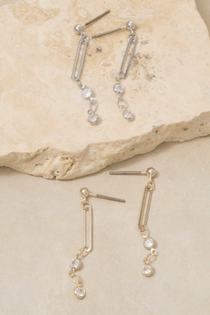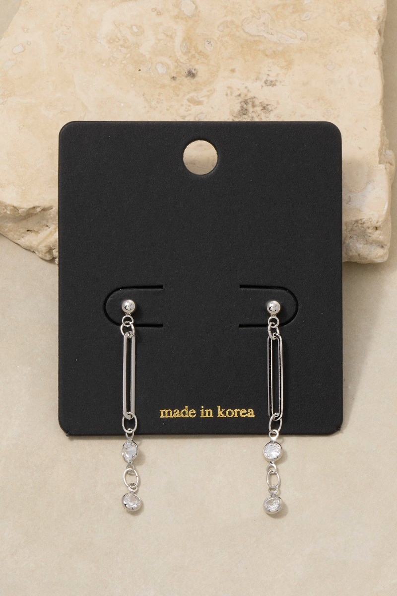 • This pair of drop earrings introduces a unique open rectangle link & cubic zirconia style. Immerse yourself in the details of design, as this pair of drop earrings effortlessly becomes a conversation starter.