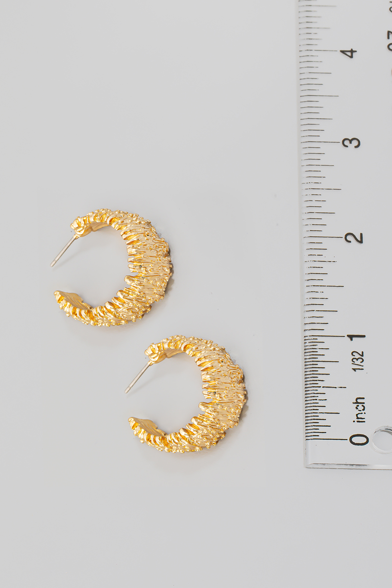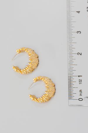 • This pair of hoop earrings introduces a unique ornate style. Delight in the nuanced details that make this accessory a testament to fine design and impeccable taste.