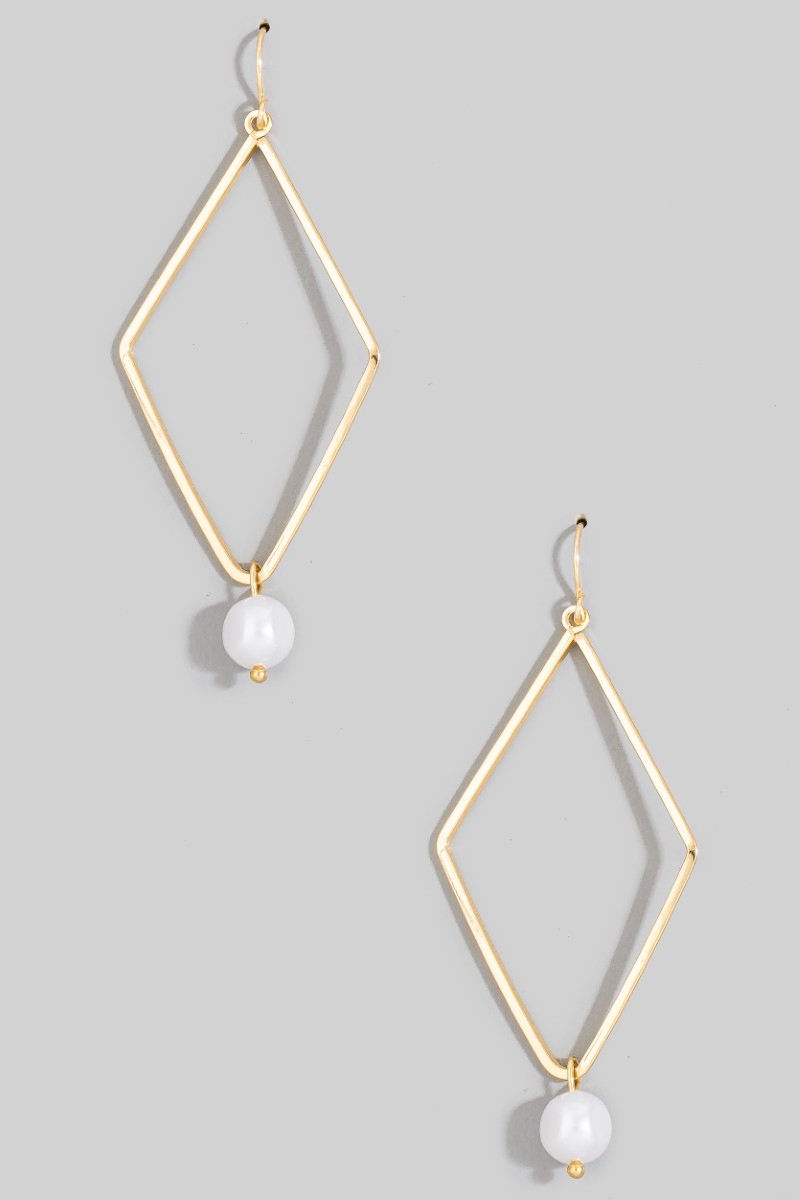 • This pair of dangle earrings features a fashionable pearl bead diamond style. Step into a world of refined taste as this pair of dangle earrings effortlessly refines the details of your outfit.