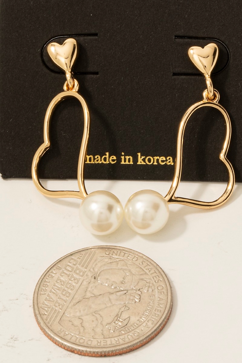 - This pair of dangle earrings brings a unique pearl bead double heart style. Step into a world of refined taste as this pair of dangle earrings effortlessly refines the details of your outfit.