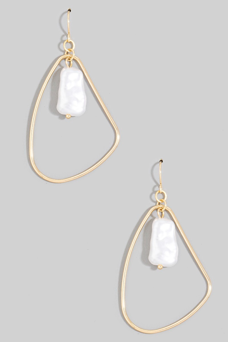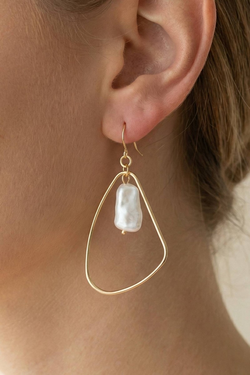 - This pair of dangle earrings adds a modern pearl bead irregular tear style. Experience refined sophistication with this understated yet stylish piece.