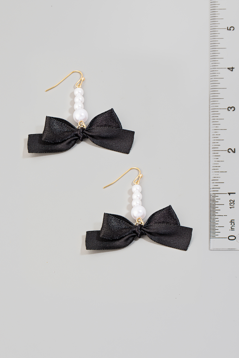 - This pair of dangle earrings displays a fashionable pearl beaded bar and ribbon bow style. Immerse yourself in the details of design, as this accessory effortlessly becomes a conversation starter.