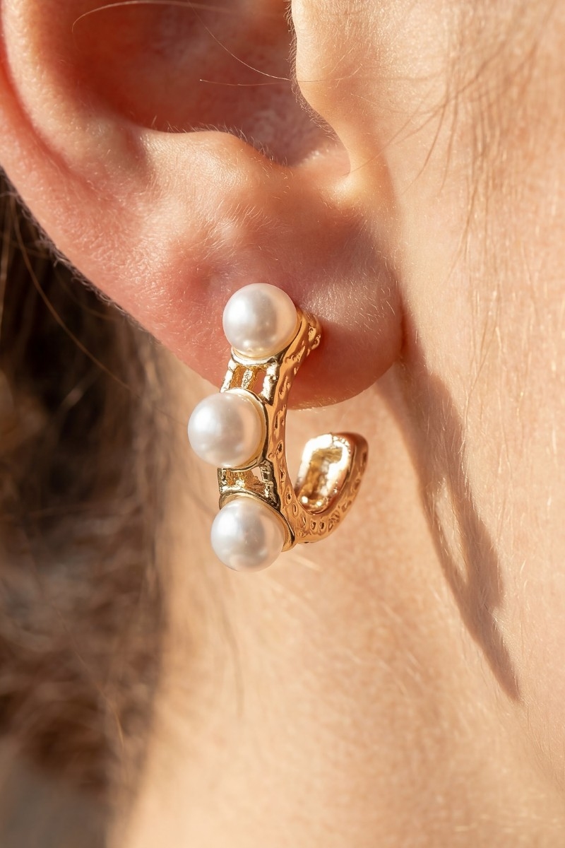 - This pair of hoop earrings displays a fashionable pearl beads mini style. Witness the transformative power of accessories as this piece effortlessly redefines your fashion narrative.