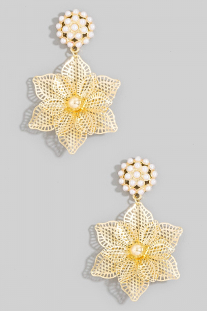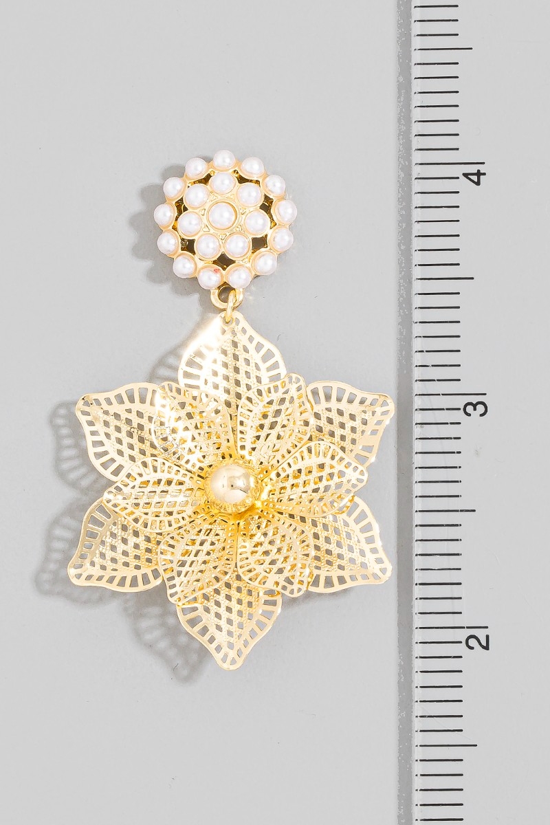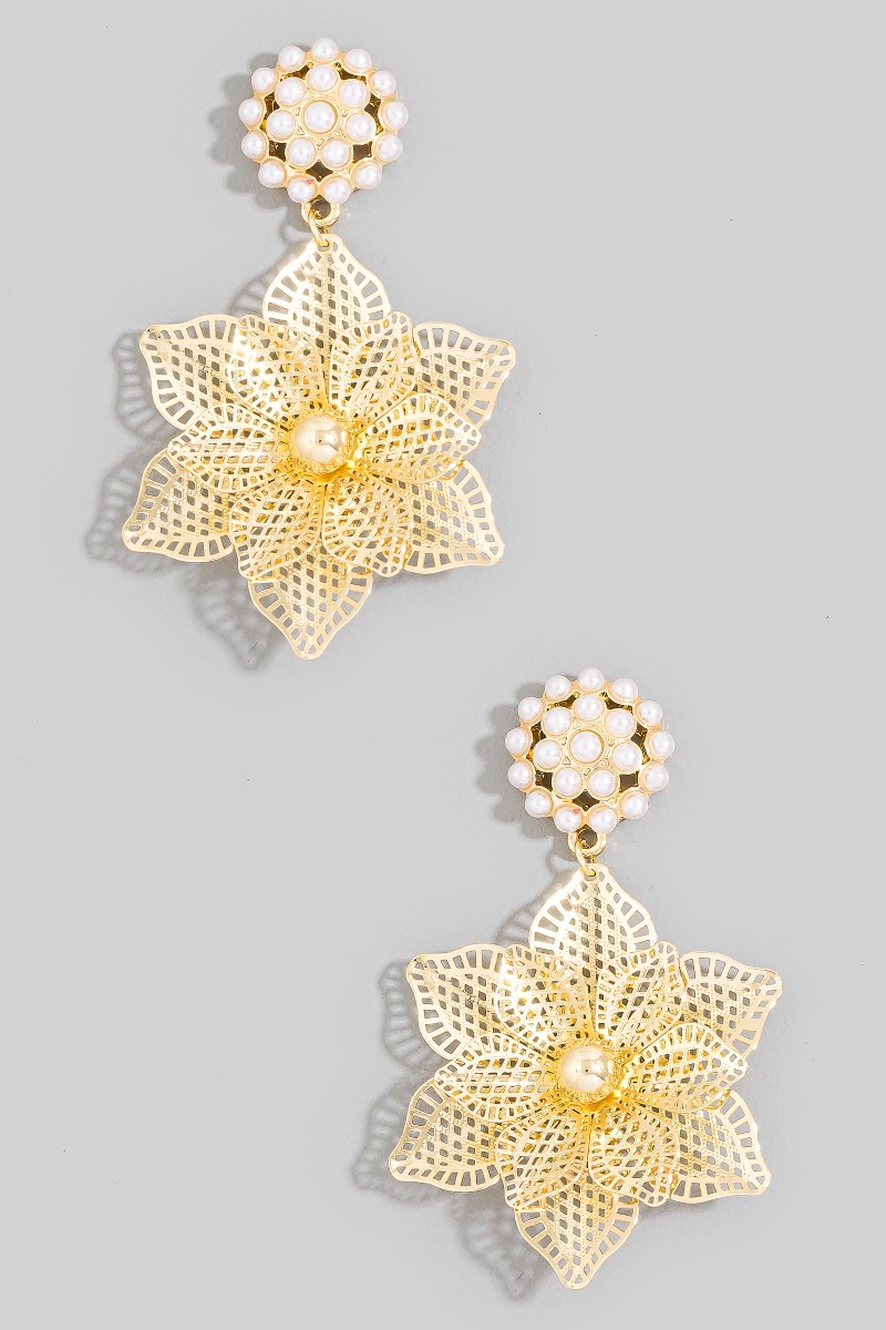 - This pair of drop earrings displays a vibrant pearl & gold filigree flower style. Delight in the nuanced details that make this pair of drop earrings a testament to fine design and impeccable taste.