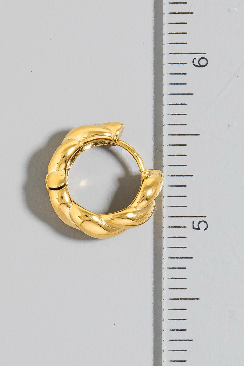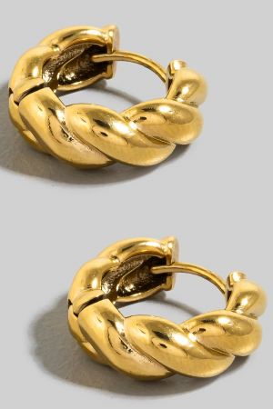 - This pair of hoop earrings showcases a timeless pvd gold plated twisted hinge style. Discover the perfect balance of subtlety and flair as this pair of hoop earrings effortlessly completes your look.