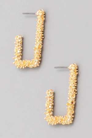 White Beads Accent Chunky Hoop Earrings
