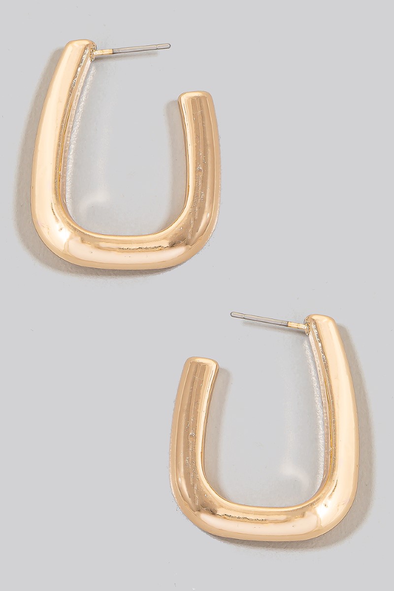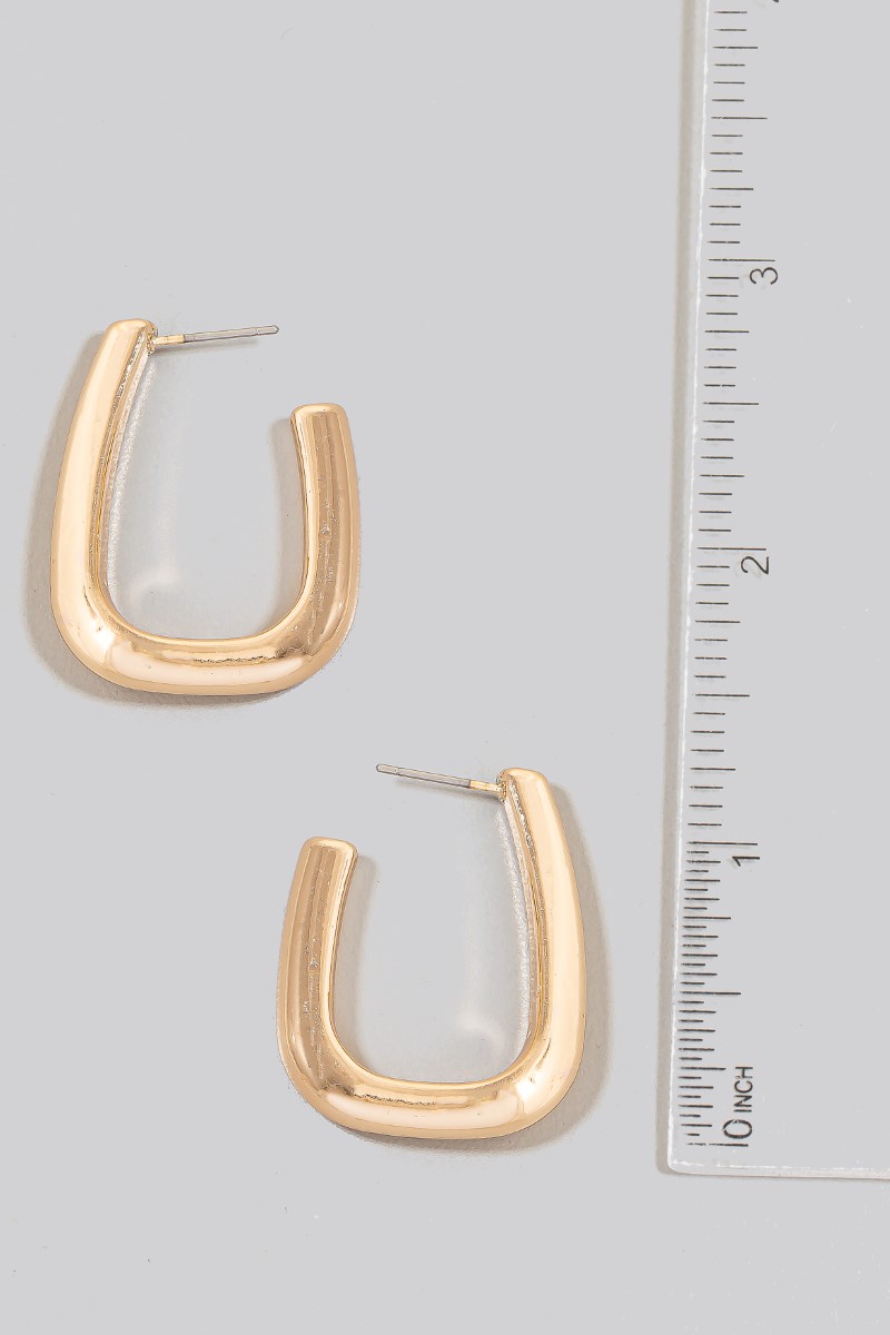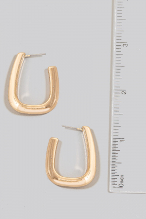 - This pair of hoop earrings showcases a unique rounded metallic rectangle style. Indulge in the allure of exquisite craftsmanship as this pair of hoop earrings effortlessly adds a touch of luxury to your attire.