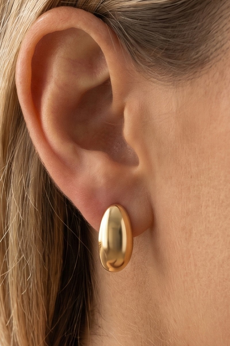 • This pair of stud earrings showcases a timeless small puffy oval style. Celebrate individuality with this pair of stud earrings that effortlessly expresses your unique sense of style.