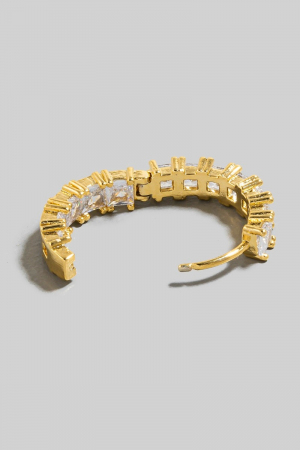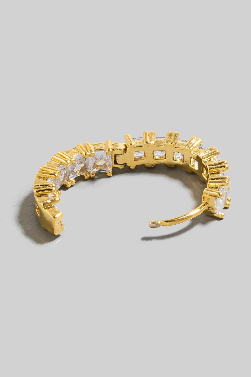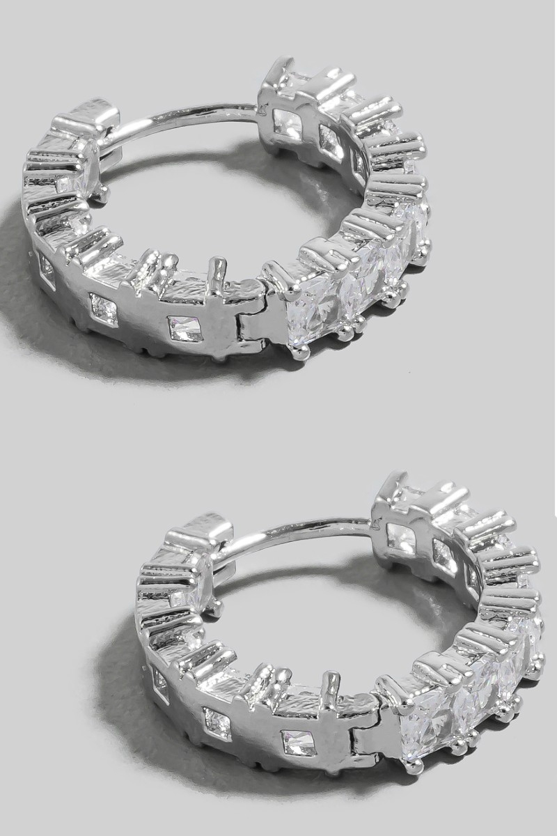 - This pair of hoop earrings features a fashionable square cubic zirconia studded style. Discover the perfect balance of subtlety and flair as this pair of hoop earrings effortlessly completes your look.