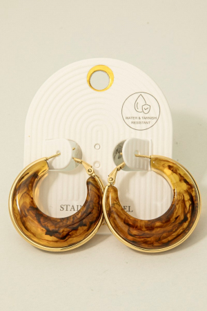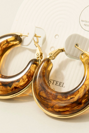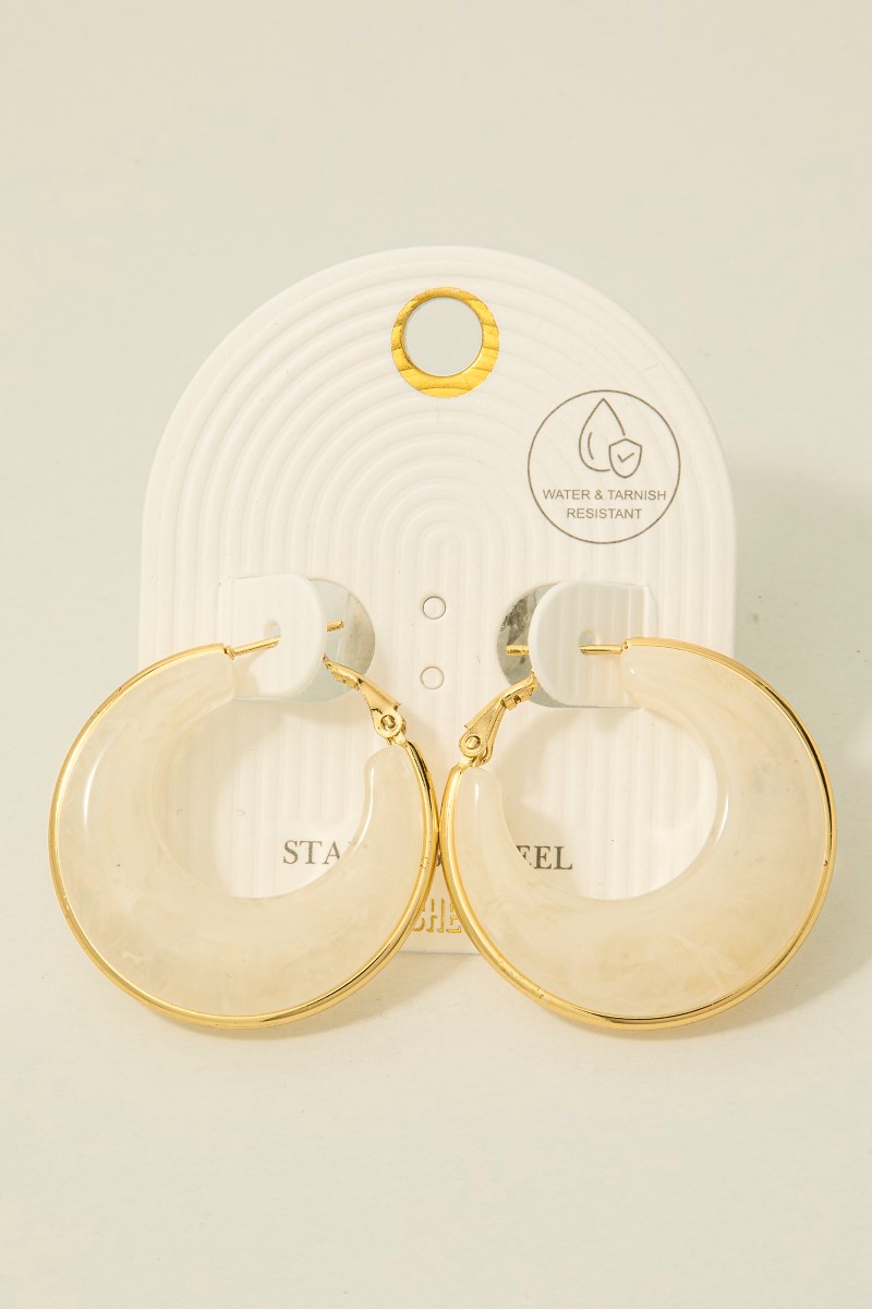 - This pair of hoop earrings introduces a unique stainless steel edge graduated acrylic latch style. Indulge in the allure of exquisite craftsmanship as this pair of hoop earrings effortlessly adds a touch of luxury to your attire.