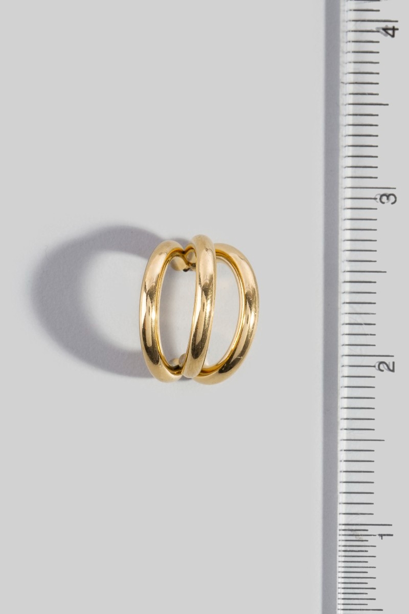 • This pair of hoop earrings adds a modern stainless steel layered tube style. Revel in the intricate design that effortlessly distinguishes this pair of hoop earrings, making it a statement piece.