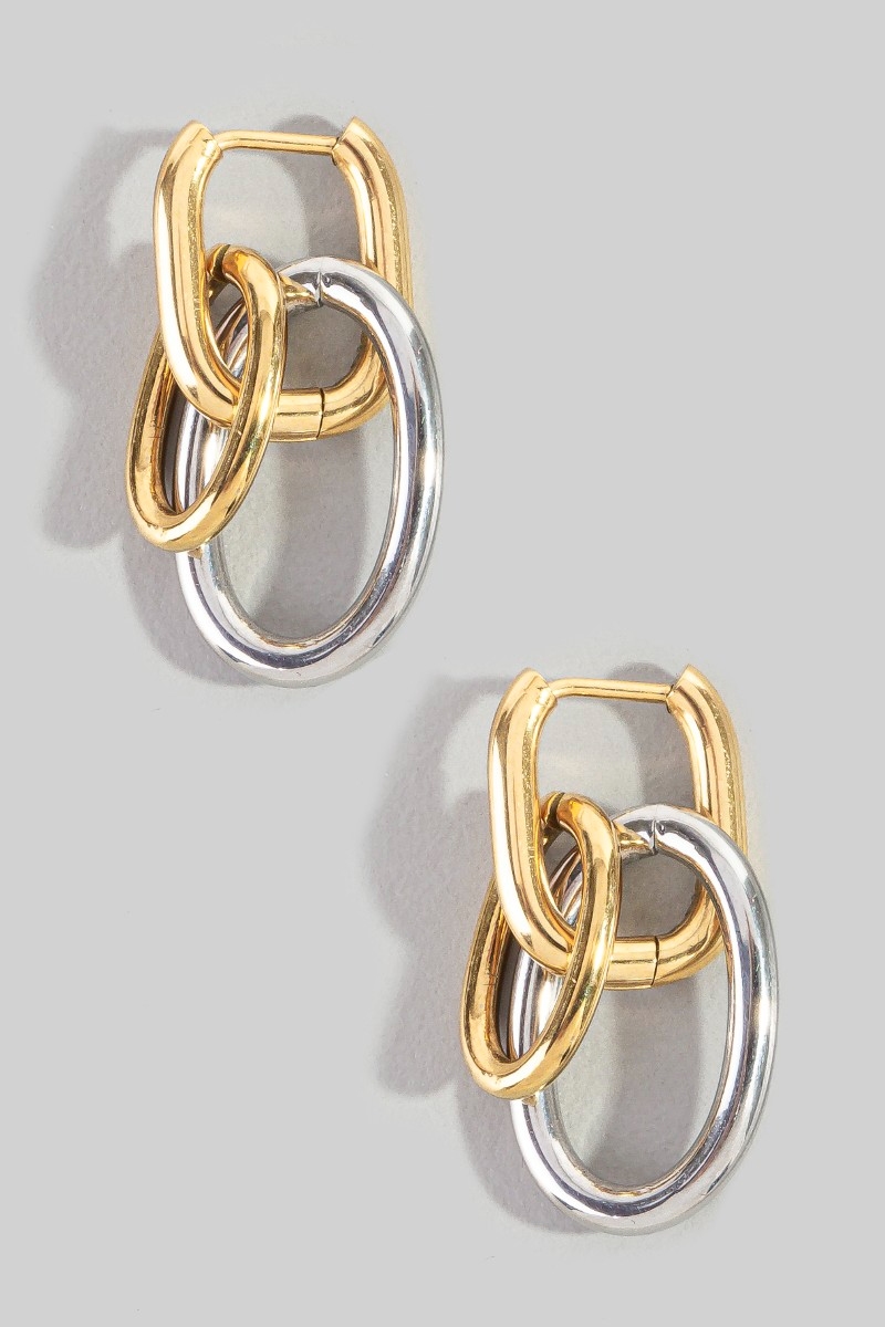 - This pair of drop earrings introduces a stunning stainless steel two tone ring links style. Step into a world of refined taste as this pair of drop earrings effortlessly refines the details of your outfit.