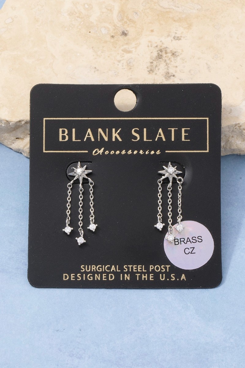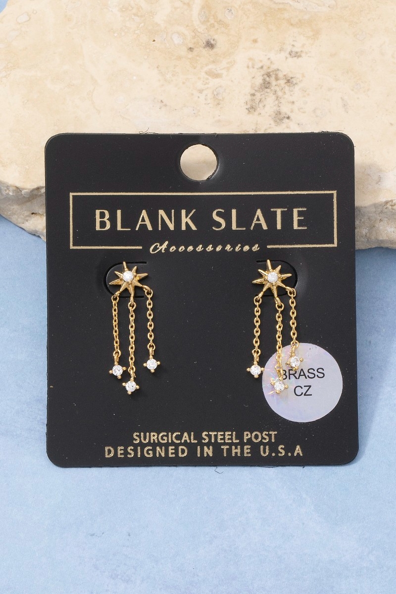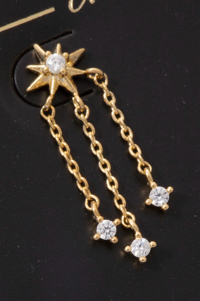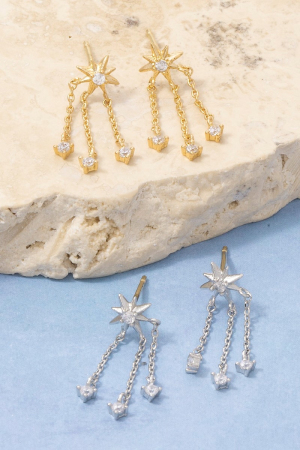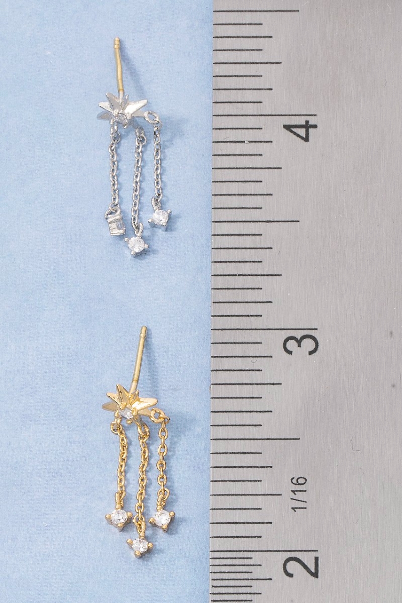 - This pair of drop earrings brings a unique starburst cubic zirconia stud triple chain style. Unveil modern elegance with this subtly intricate pair of drop earrings.