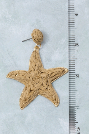 - This pair of dangle earrings brings a luxurious straw weave star style. Revel in the intricate design that effortlessly distinguishes this pair of dangle earrings, making it a statement piece.