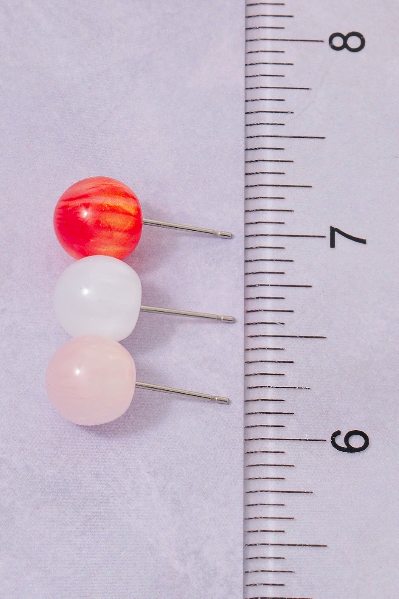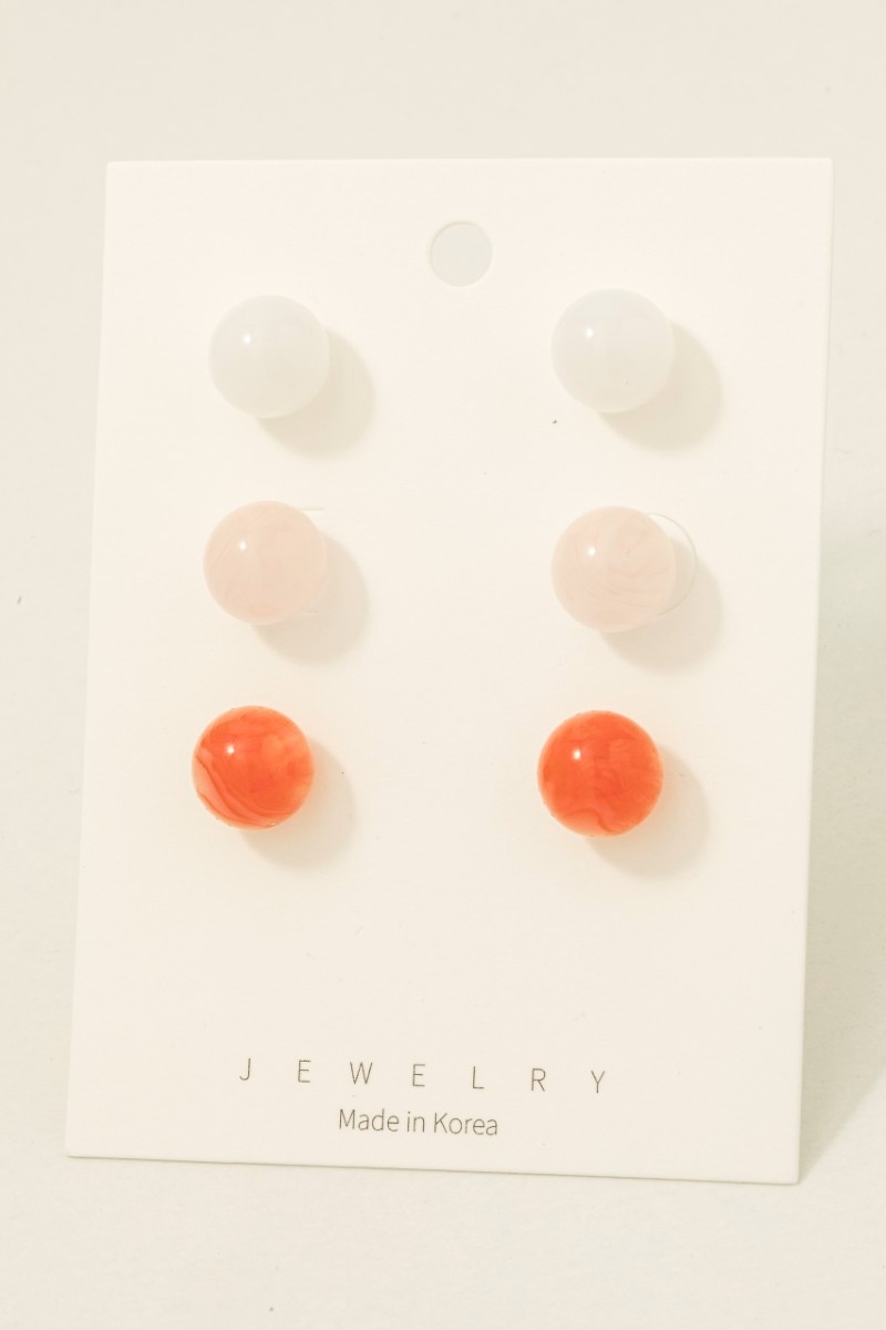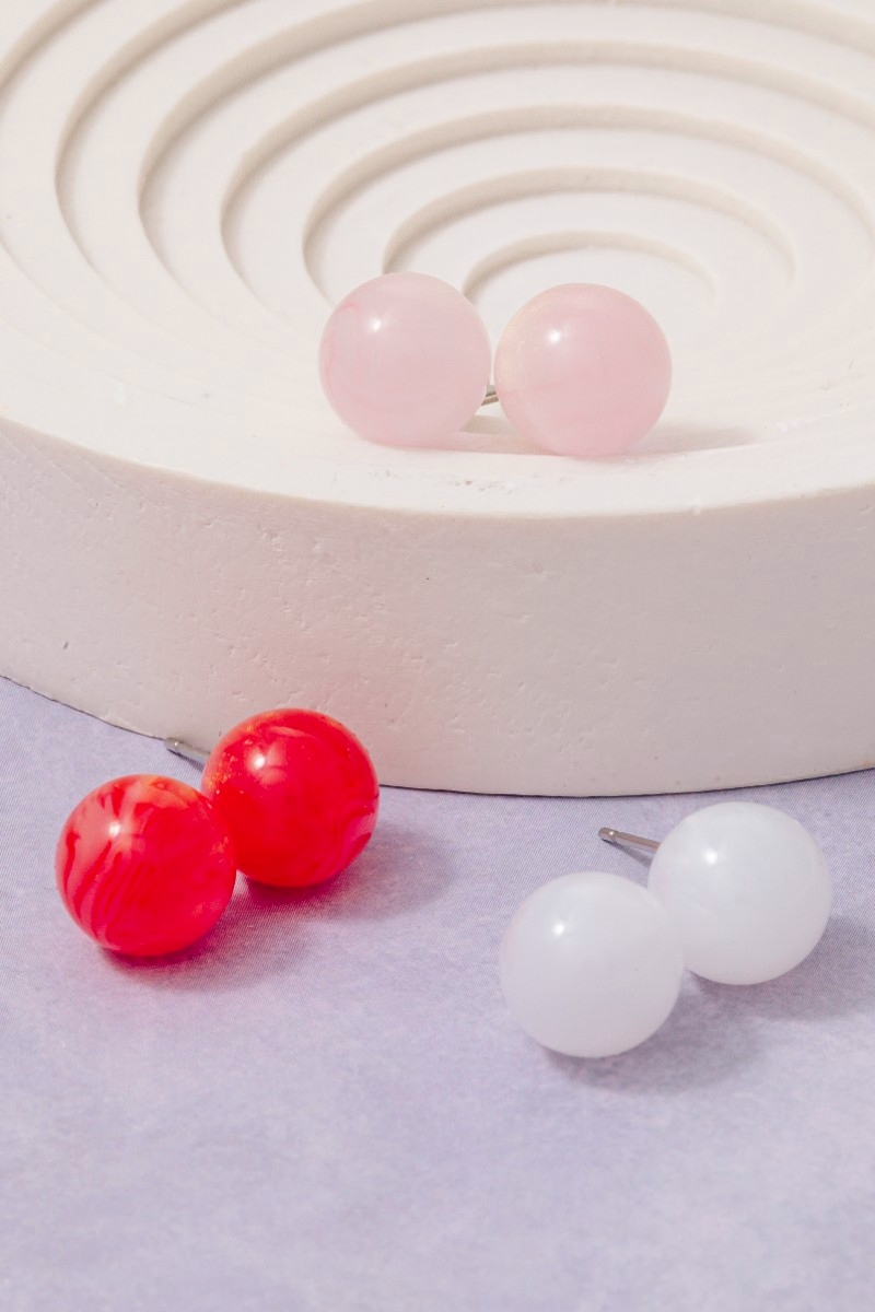 • This pair of stud earrings features a fashionable 3 pair acrylic ball style. Immerse yourself in fashion finesse with this statement pair of stud earrings.