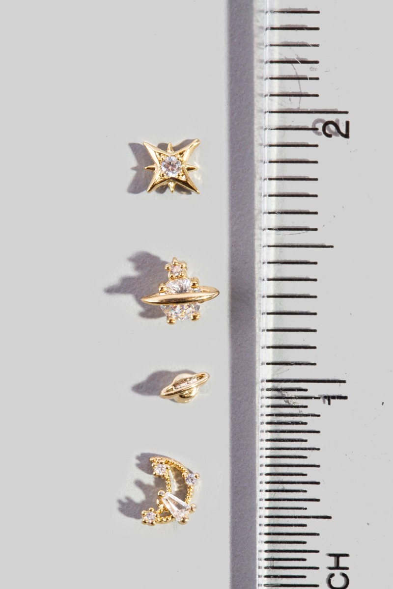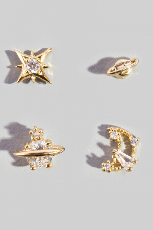 - This pair of stud earrings adds a modern 4pc space theme cubic zirconia set style. Witness the perfect fusion of style and functionality as this pair of stud earrings effortlessly complements your lifestyle.