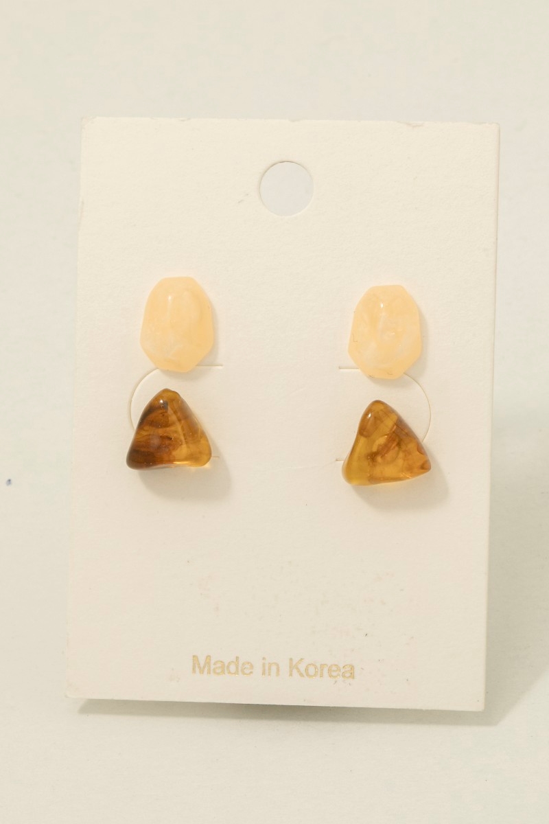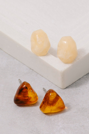 • This pair of stud earrings adds a modern amber and pink abstract acrylic shapes set style. Elevate your ensemble with this chic, timeless pair of stud earrings.