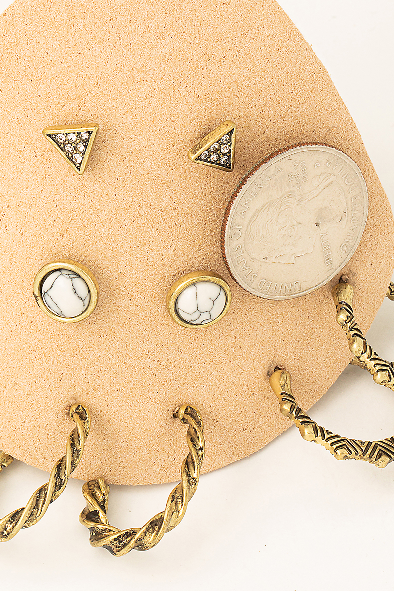 Triple Metallic Knot Stud Earrings