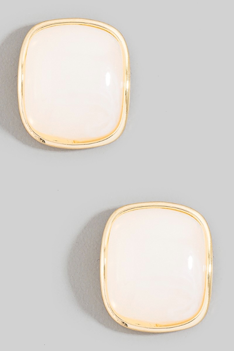 • This pair of stud earrings displays a fashionable curved marble resin rectangle shield style. Delight in the intricate details that make this pair of stud earrings an essential element in expressing your fashion identity.