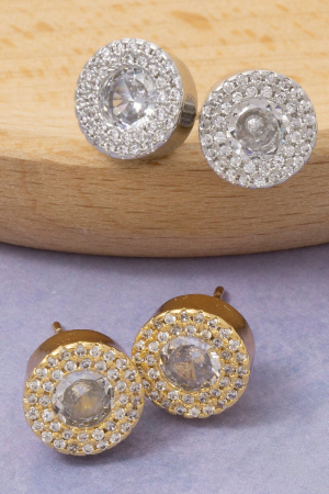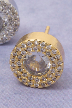 • This pair of stud earrings features a fashionable cz double halo thick style. Experience the joy of accessorizing with this piece that effortlessly combines versatility and charm.