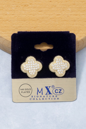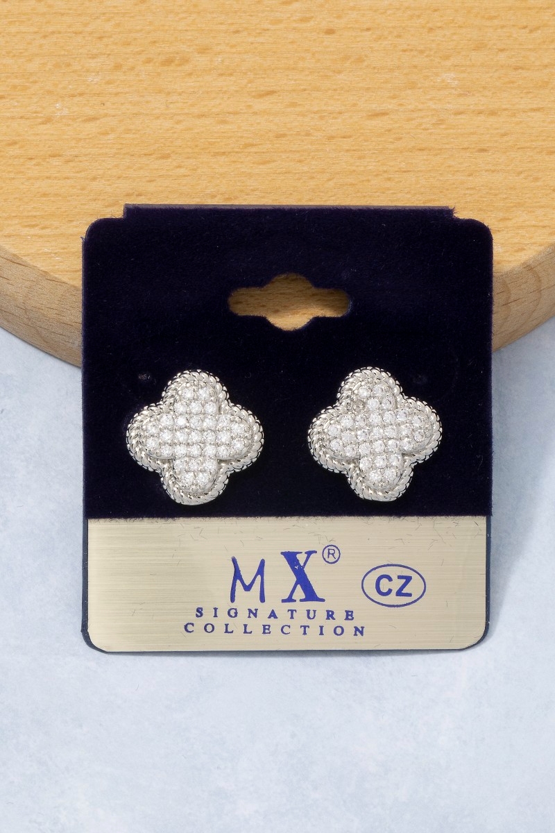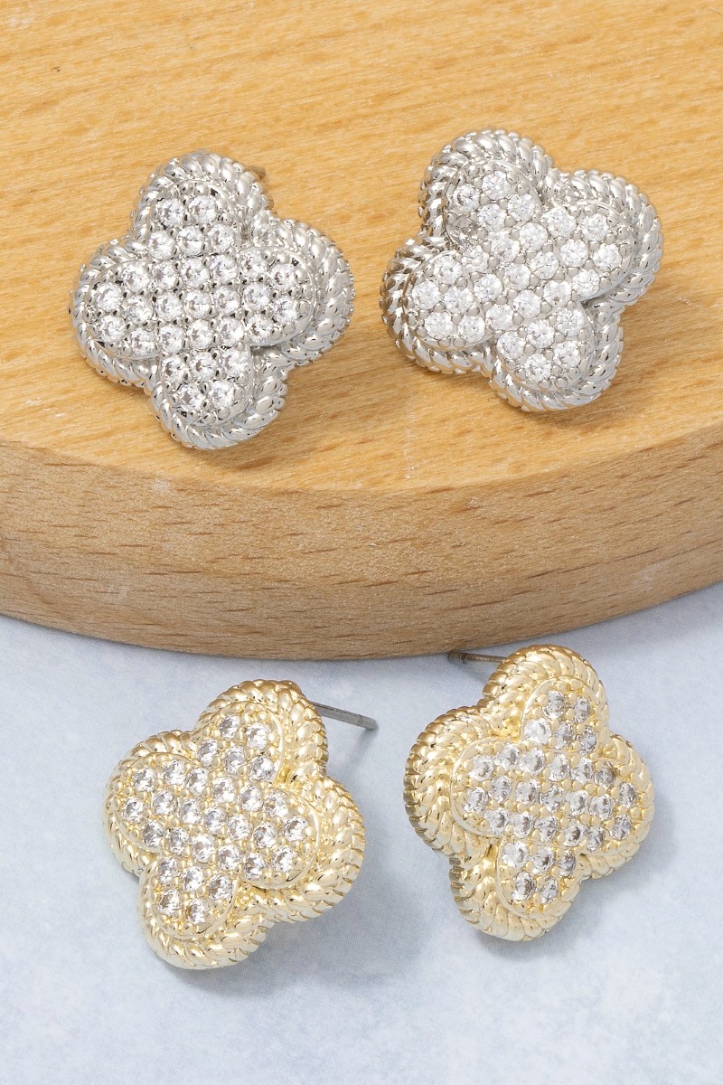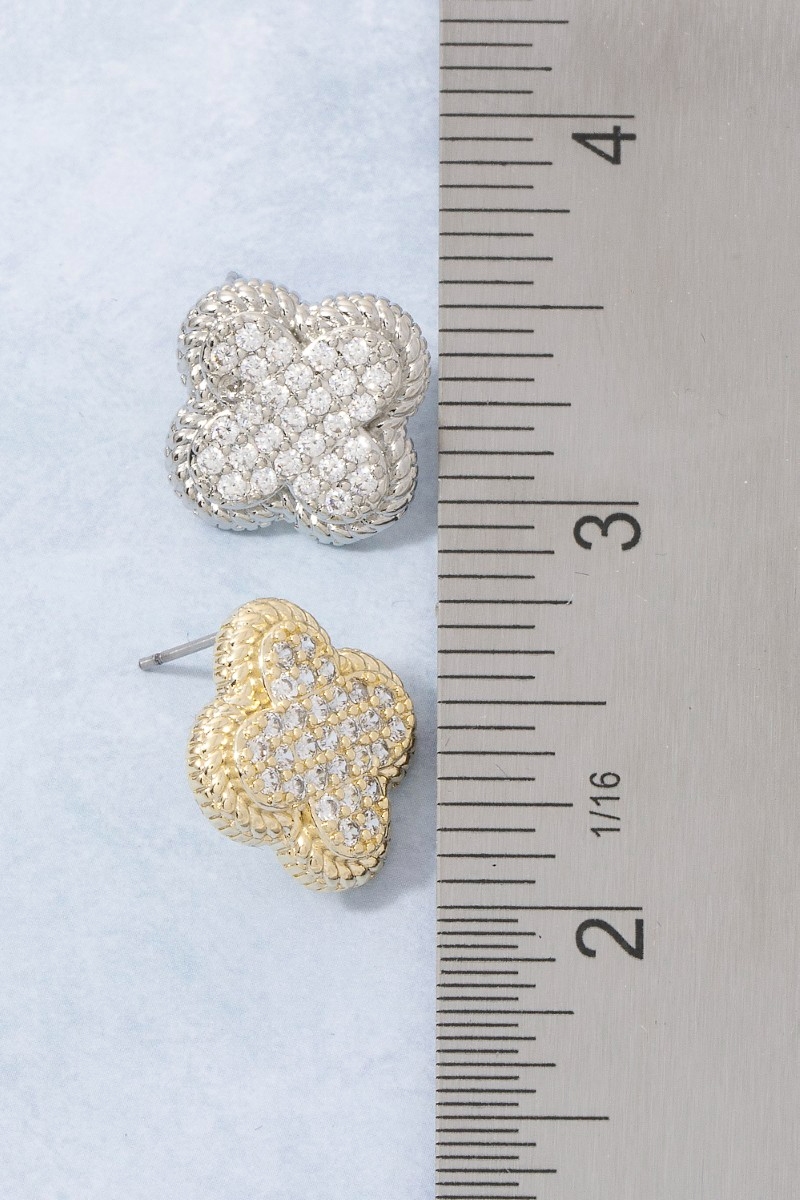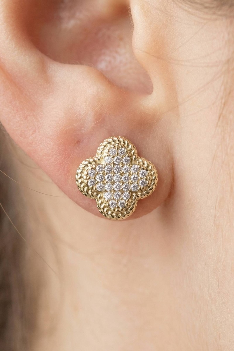 • This pair of stud earrings introduces a unique cz rope edge clover style. Elevate your ensemble with this chic, timeless pair of stud earrings.
