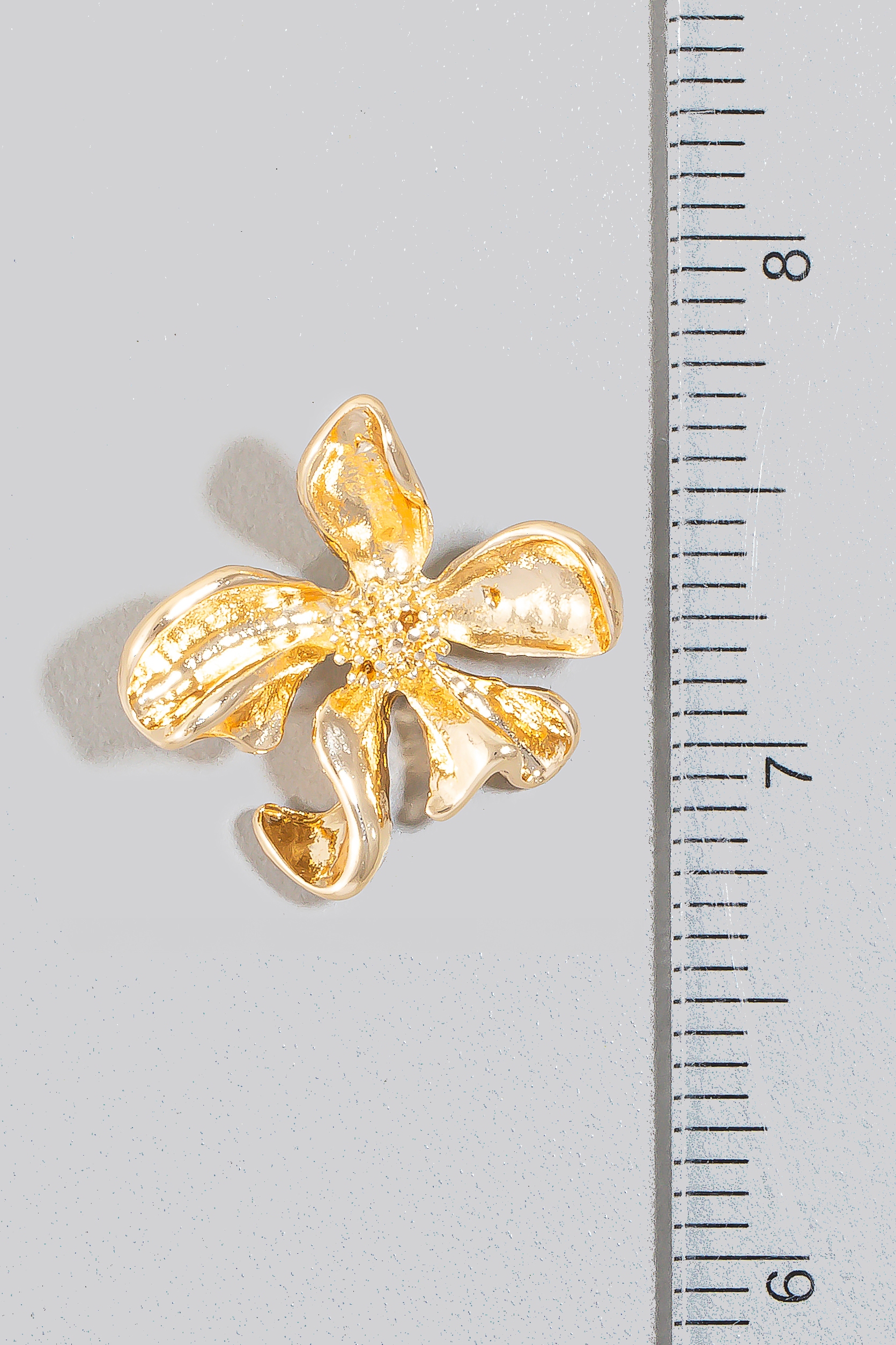 - This pair of stud earrings introduces a stunning detailed metallic flower style. Unveil a new dimension of sophistication as this pair of stud earrings effortlessly enhances the elegance of your ensemble.
