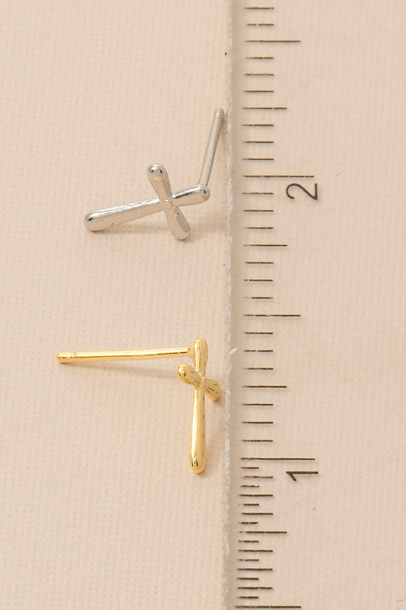 - This pair of stud earrings showcases a unique gold dipped cross mini style. Discover the perfect balance of functionality and fashion.