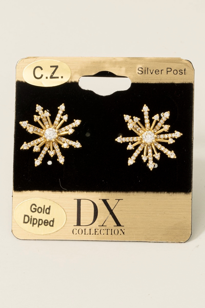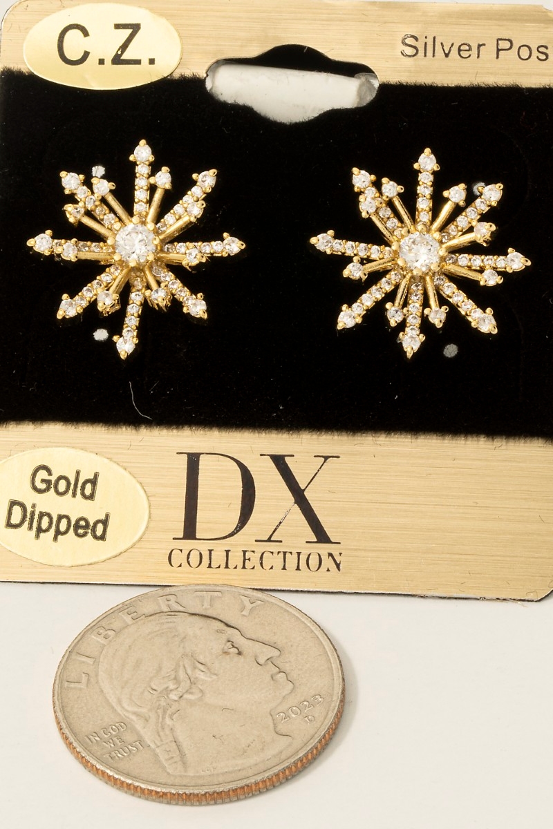 - This pair of stud earrings adds a modern gold dipped cubic zirconia arrow cluster style. Elevate your ensemble with this pair of stud earrings that effortlessly captures the essence of refined fashion.