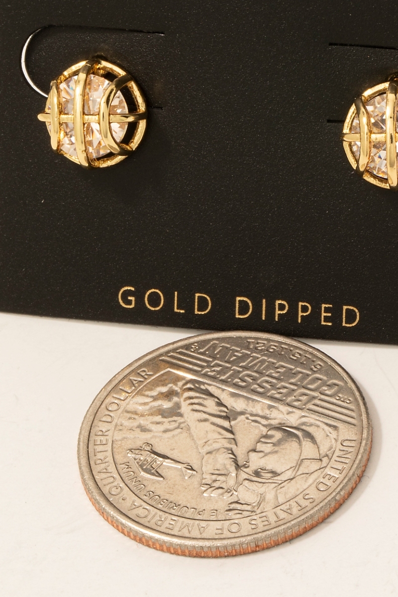 • this pair of columbus jewelry stud earrings brings a luxurious gold dipped cubic zirconia basketball style. Immerse yourself in the world of understated glamour as this pair of columbus jewelry stud earrings effortlessly exudes timeless appeal.