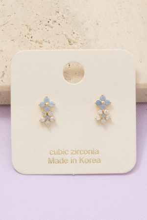 • This pair of stud earrings brings a stunning gold dipped cubic zirconia mini flower style. Celebrate the art of accessorizing with this piece that effortlessly encapsulates modern trends.