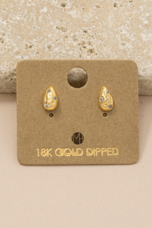 - This pair of stud earrings introduces a stunning gold dipped cubic zirconia studded teardrop style. Explore a blend of classic charm and contemporary flair.