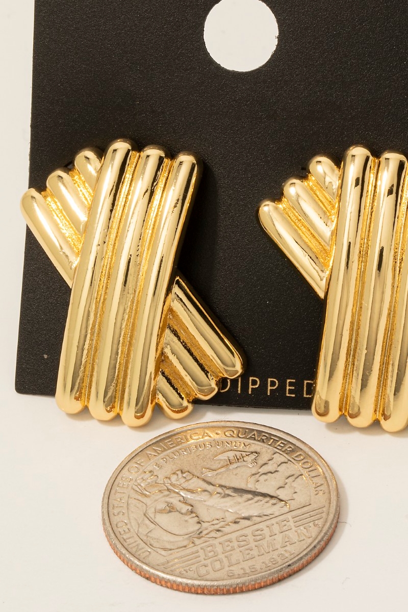 - this pair of columbus jewelry stud earrings brings a luxurious gold dipped layered ridged style. Experience a burst of creativity in accessorizing as this piece effortlessly sets the tone for your unique style.