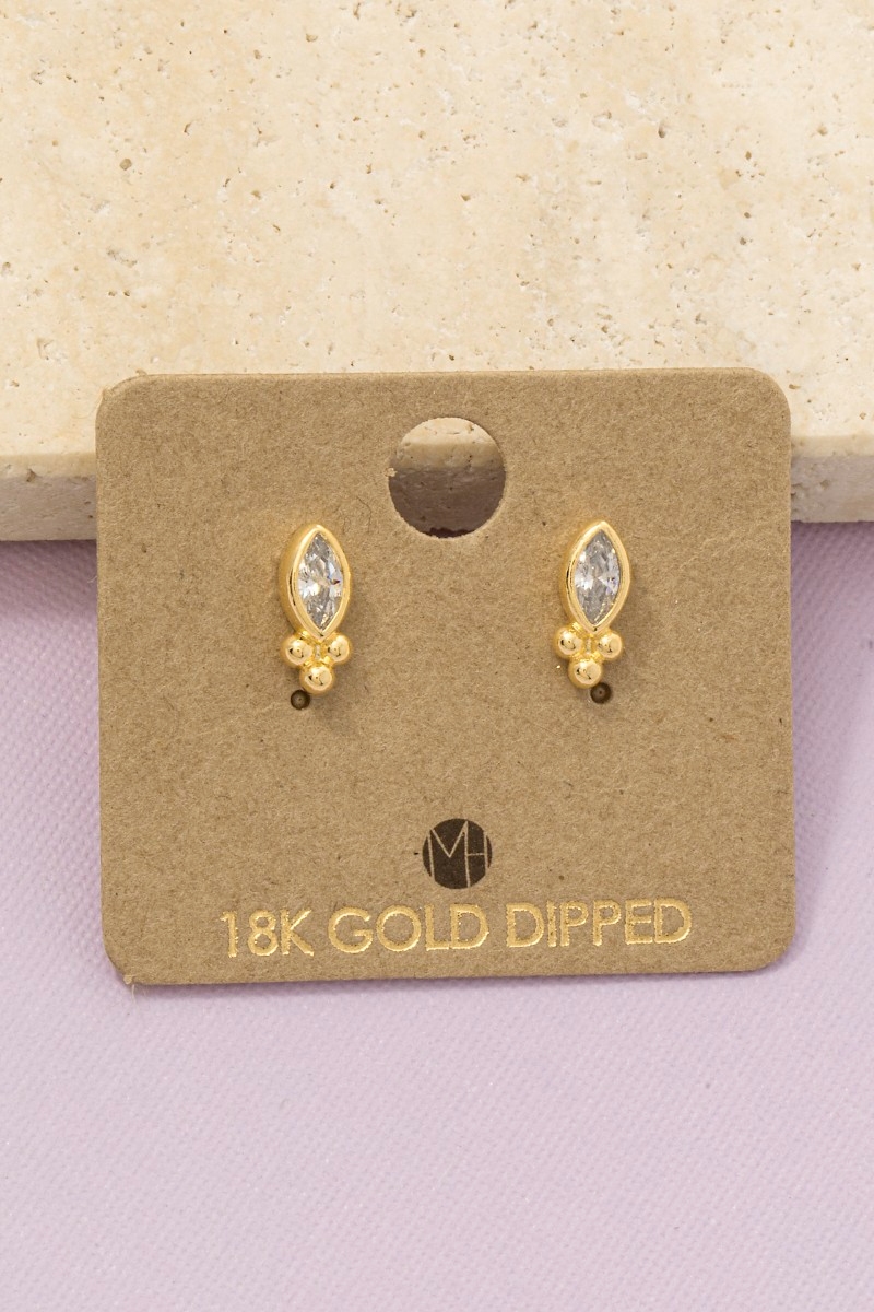 - This pair of stud earrings brings a unique gold dipped mini cubic zirconia marquise style. Celebrate individual style with this versatile, eye-catching addition.