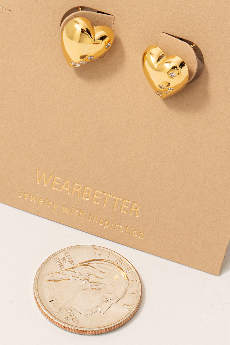 - This pair of stud earrings adds a modern gold dipped mini cz studded heart style. Discover the perfect balance of functionality and fashion.