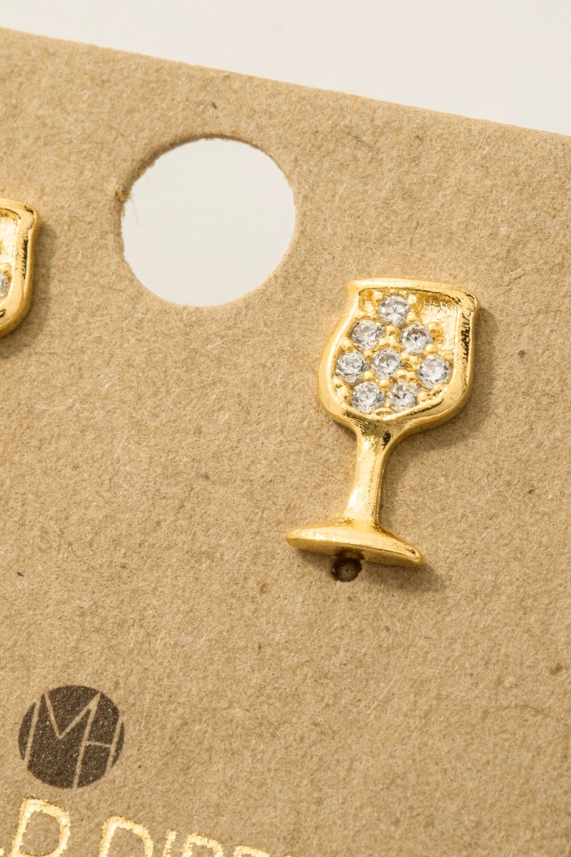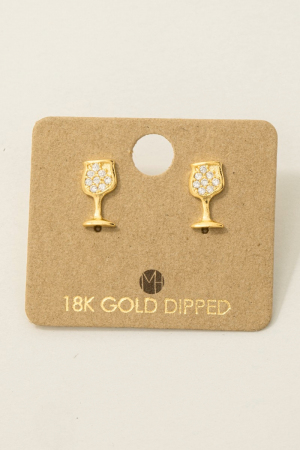 • This pair of stud earrings displays a vibrant gold dipped mini pave wine glass style. Indulge in the allure of exquisite craftsmanship as this pair of stud earrings effortlessly adds a touch of luxury to your attire.