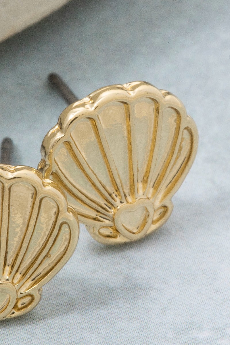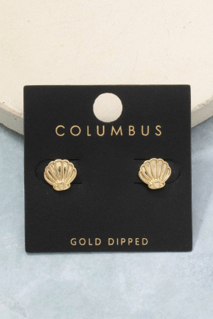 • This pair of stud earrings brings a unique gold dipped mini sea shell style. Elevate your ensemble with this chic, timeless pair of stud earrings.