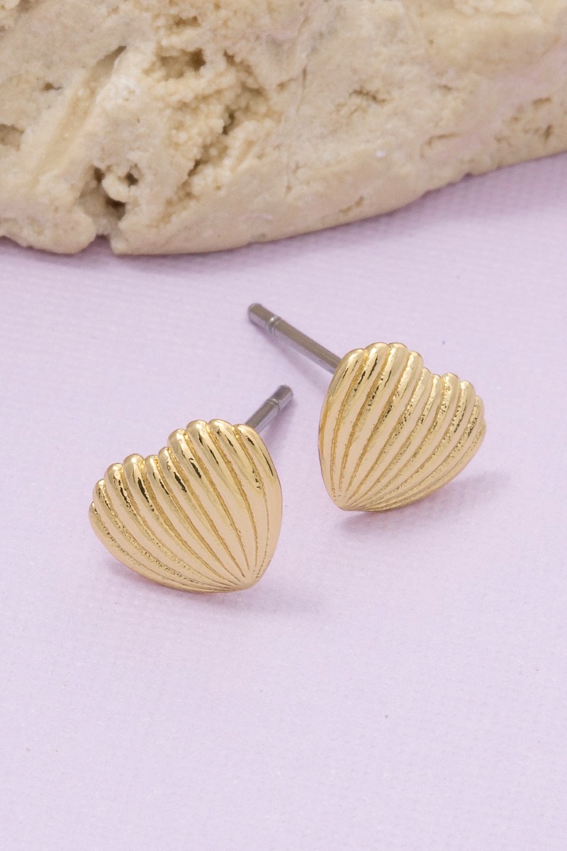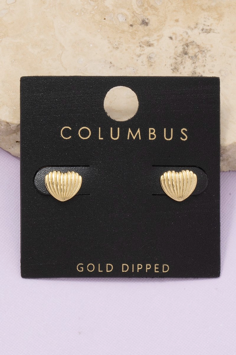 - This pair of stud earrings adds a modern gold dipped ridged heart style. Unveil modern elegance with this subtly intricate pair of stud earrings.