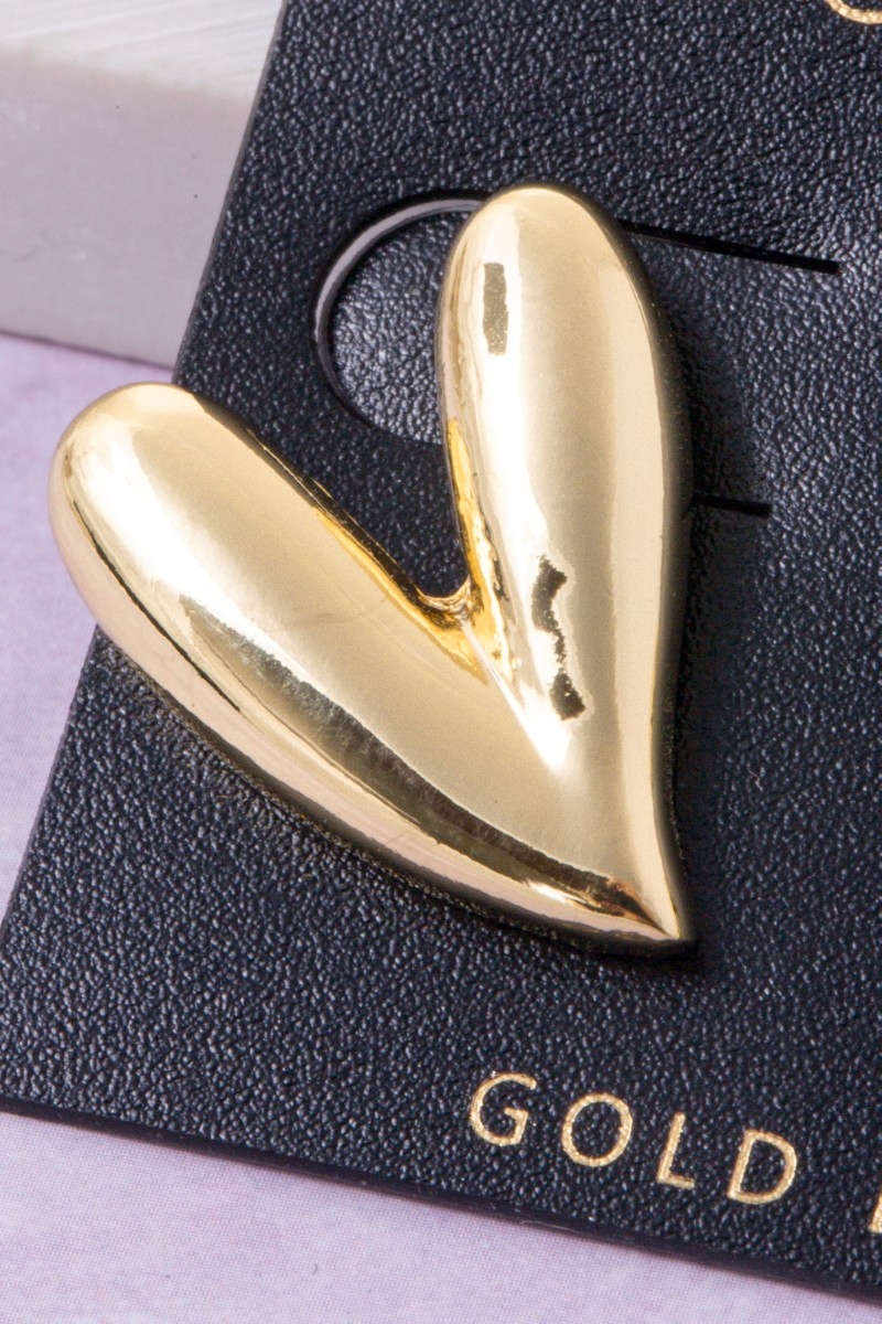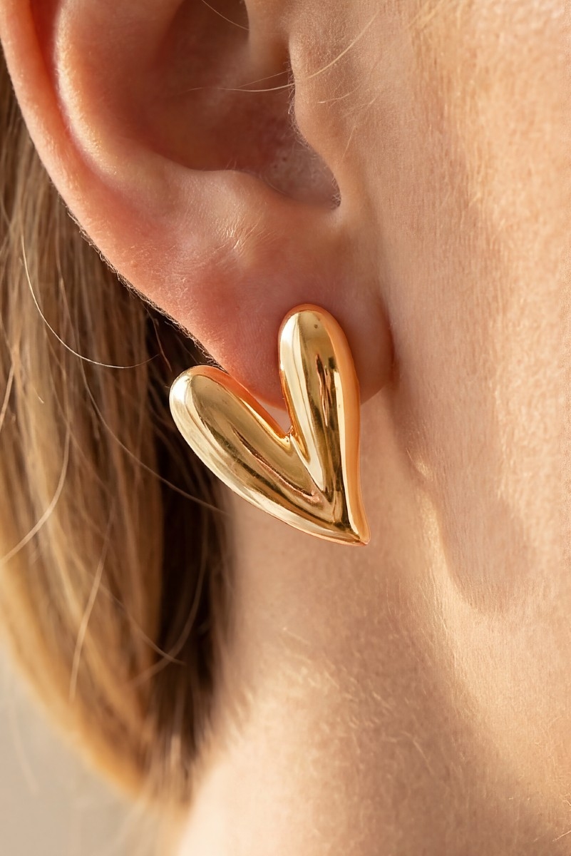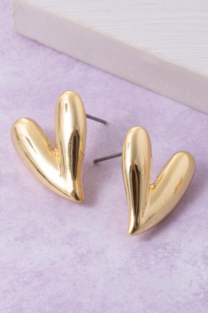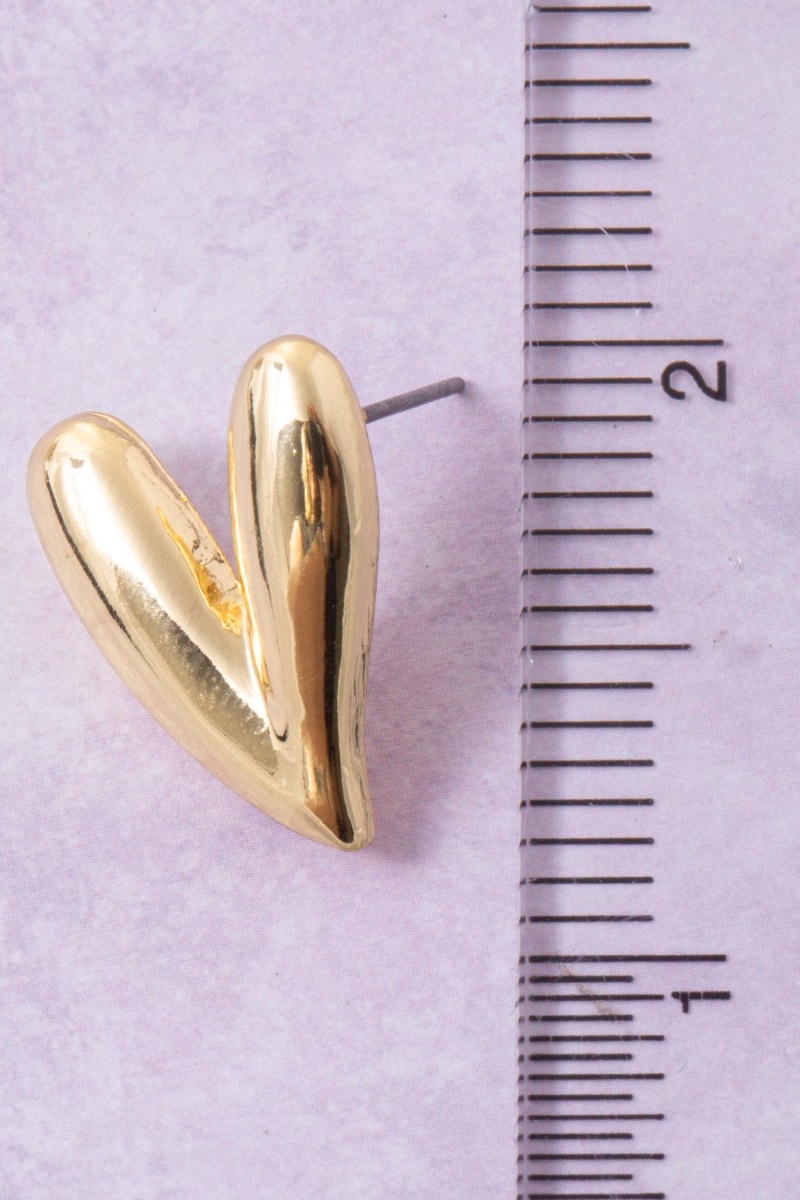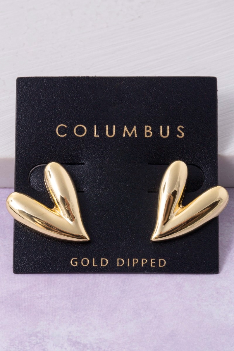 - This pair of stud earrings showcases a unique gold dipped skinny heart style. Experience refined sophistication with this understated yet stylish piece.
