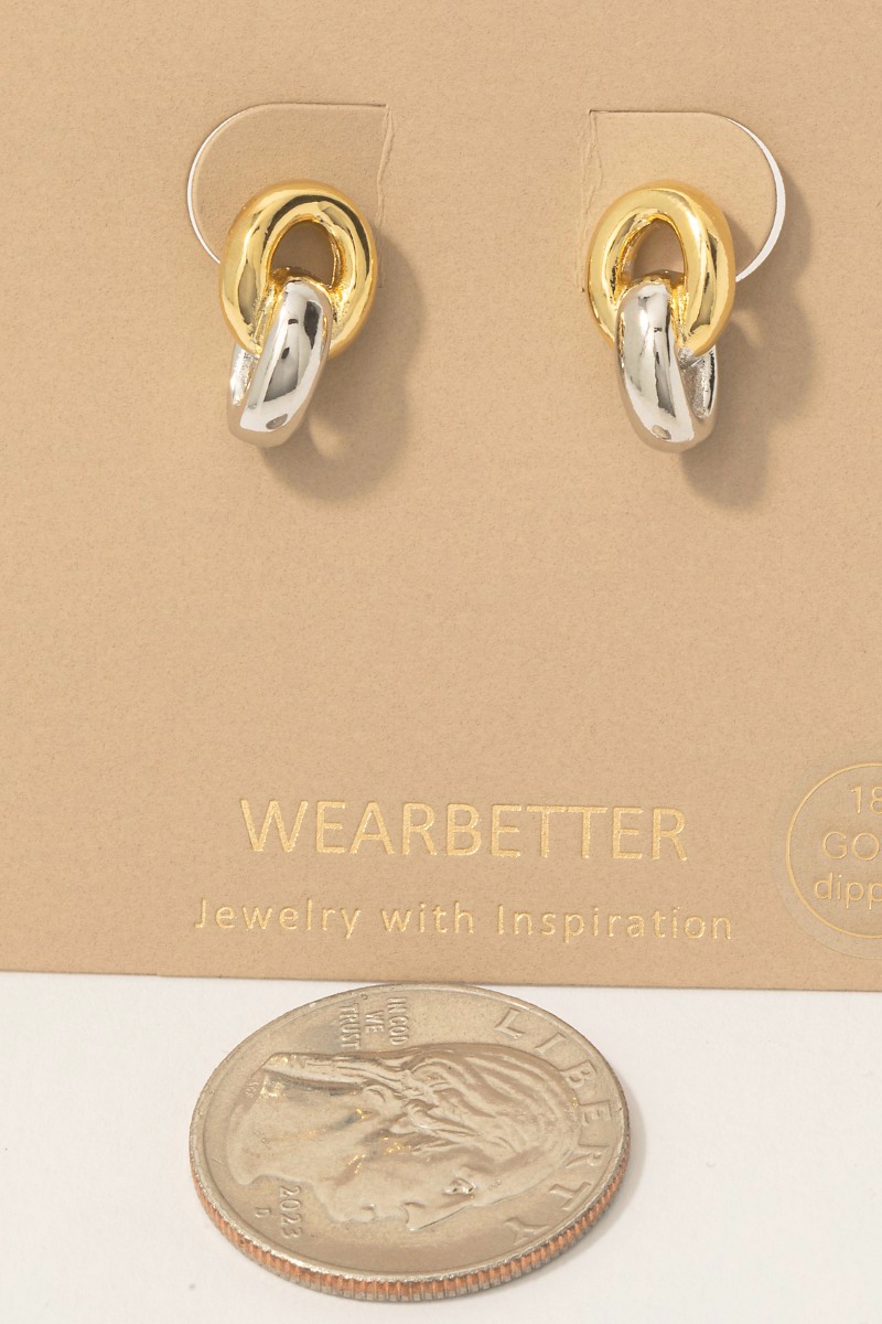 • This pair of stud earrings showcases a timeless gold dipped two tone style. Celebrate the art of accessorizing with this piece that effortlessly encapsulates modern trends.