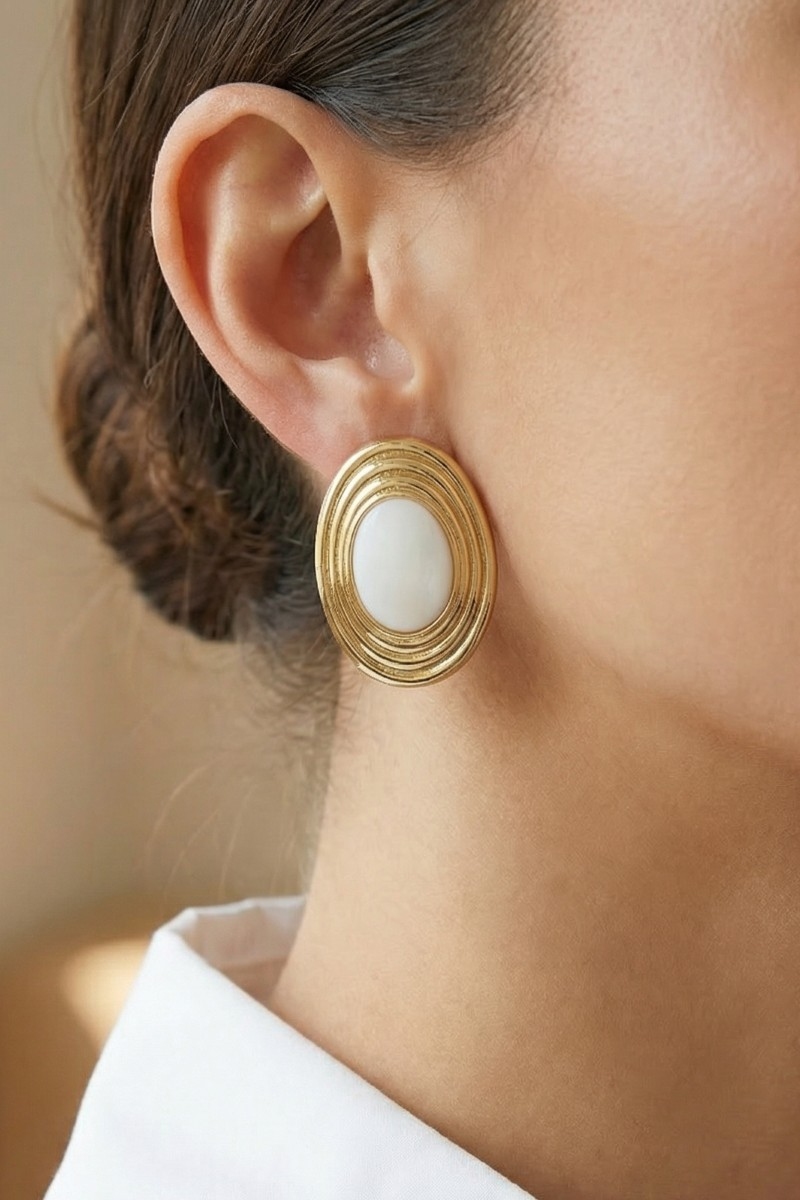 • This pair of stud earrings showcases a unique gold dipped pearl vintage style oval style. Delight in the intricate details that make this pair of stud earrings an essential element in expressing your fashion identity.