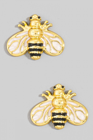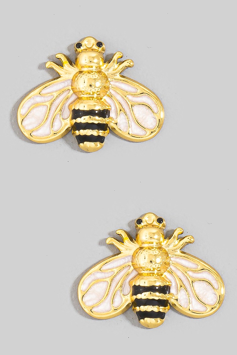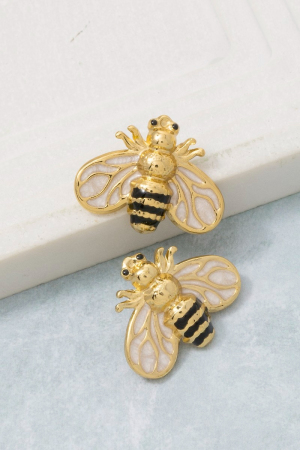 • This pair of stud earrings brings a unique intricate enamel bee style. Unveil a new dimension of sophistication as this pair of stud earrings effortlessly enhances the elegance of your ensemble.