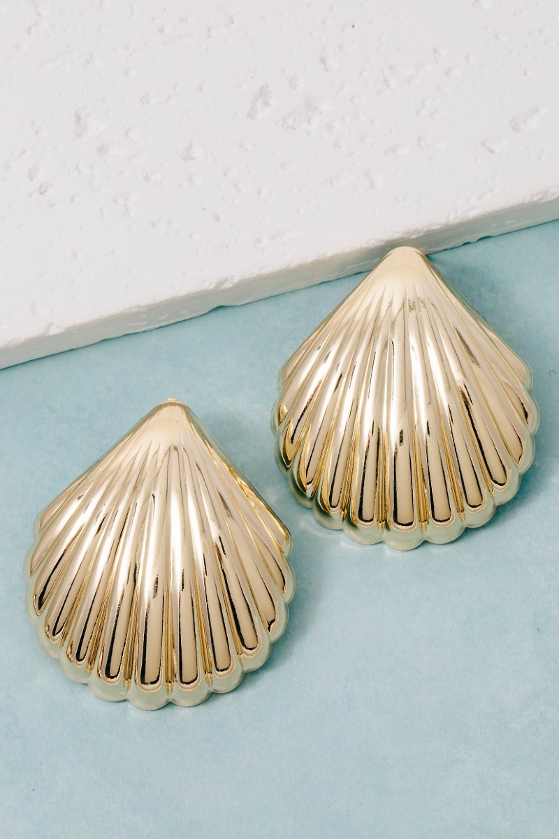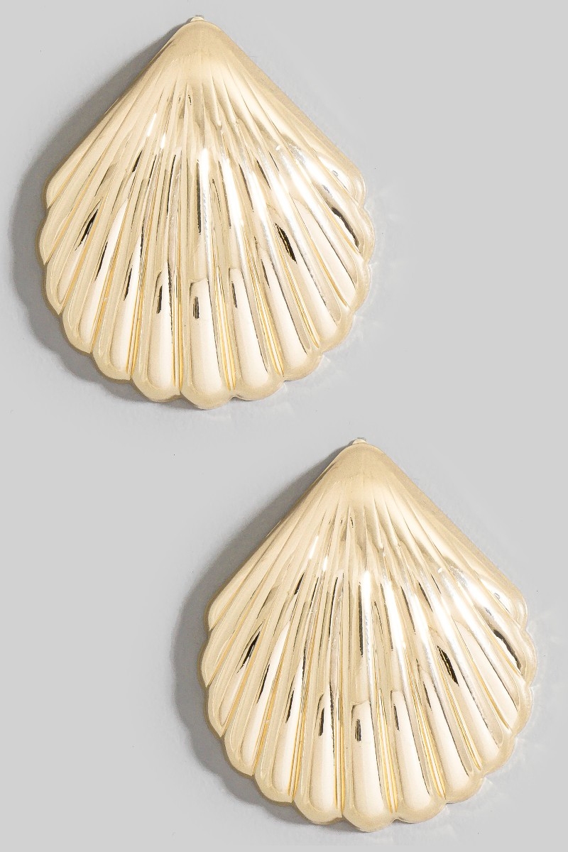 • This pair of stud earrings brings a stunning metallic seashell style. Indulge in the artistry of accessorizing with this unique piece.