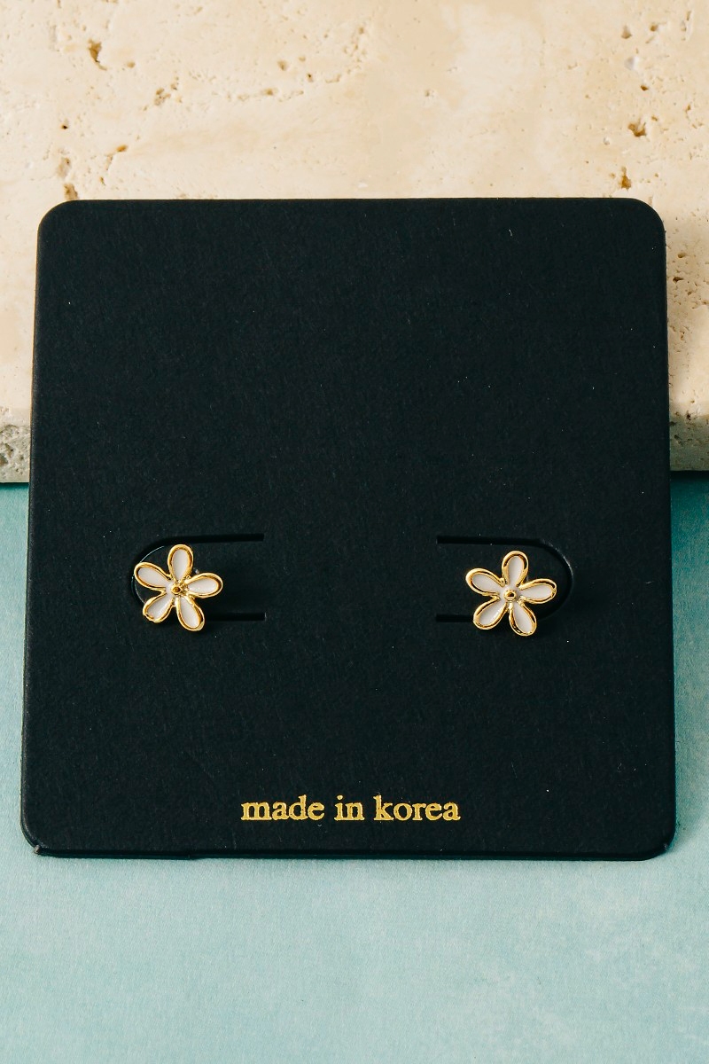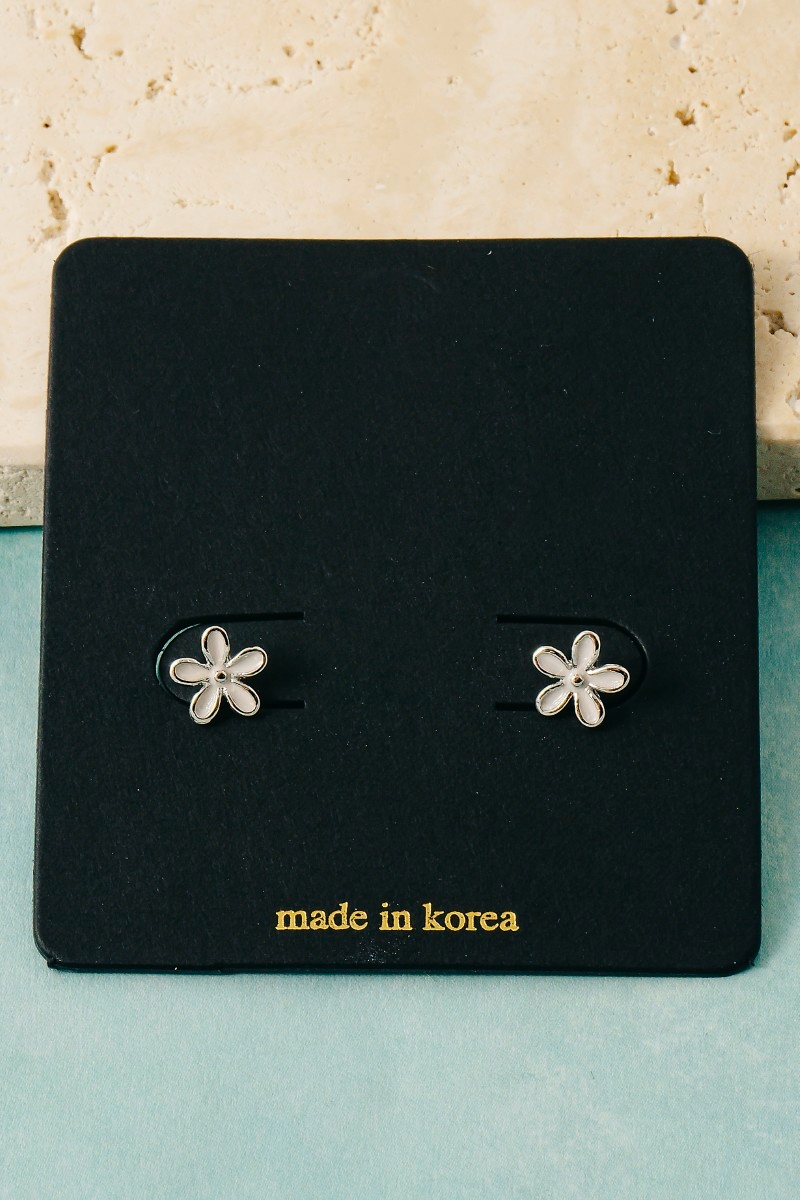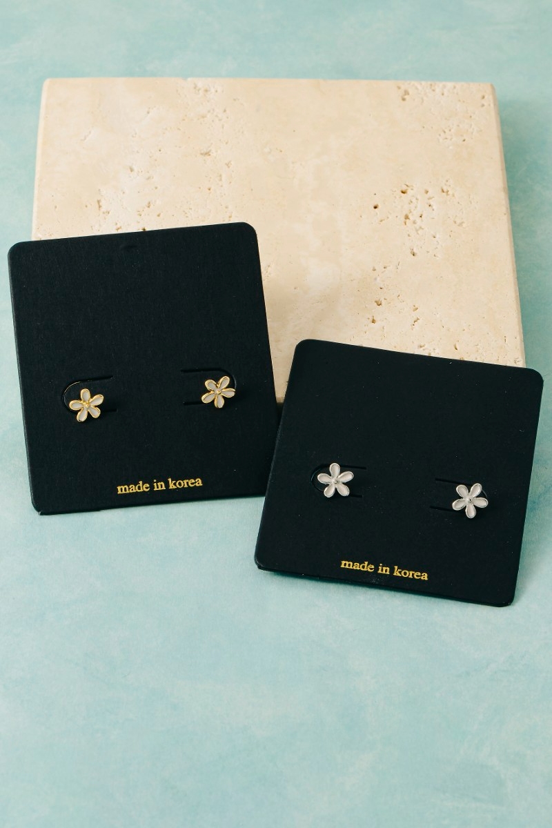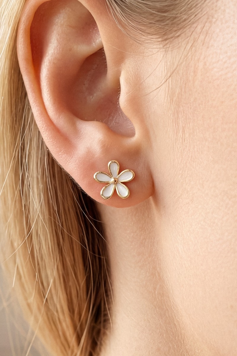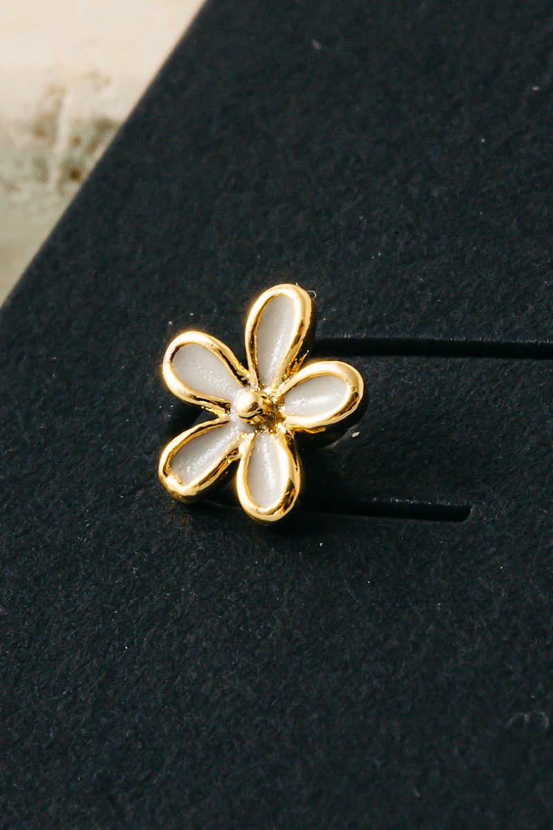 • This pair of stud earrings brings a unique mini cubic zirconia enamel flower style. Celebrate individuality with this pair of stud earrings that effortlessly expresses your unique sense of style.