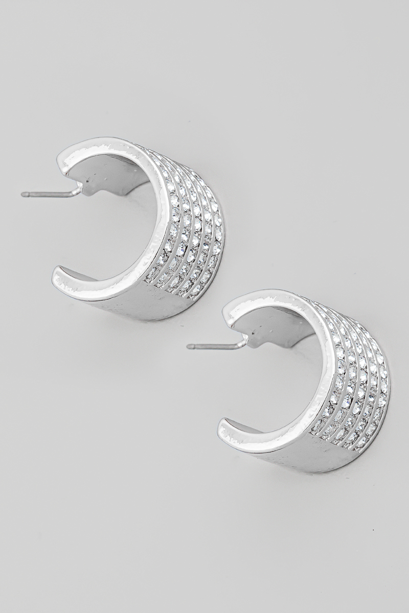 Flat Metallic Chain Dangle Rhinestone Stud Earrings