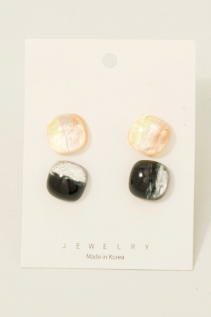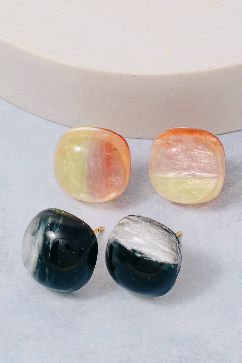 - This pair of stud earrings introduces a unique mixed color acrylic rounded square set style. Savor the allure of detailed craftsmanship in this exquisite pair of stud earrings.