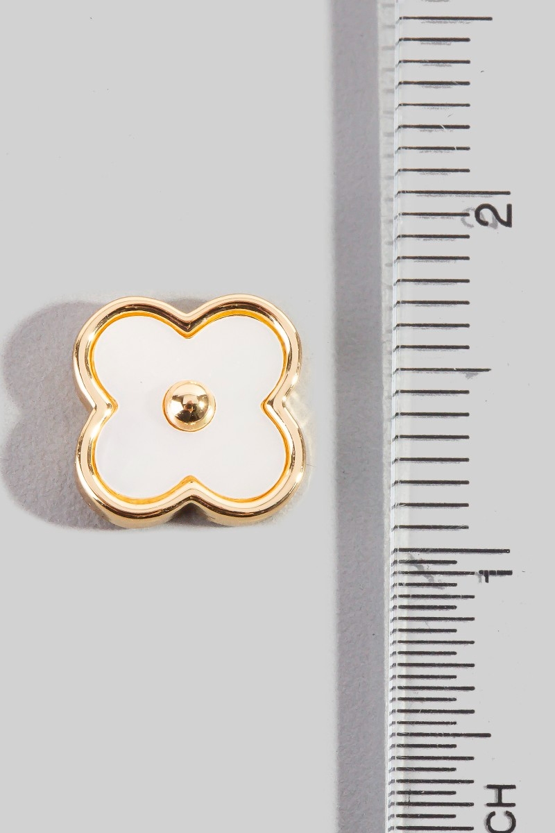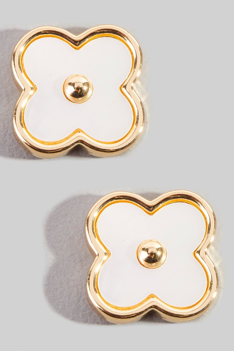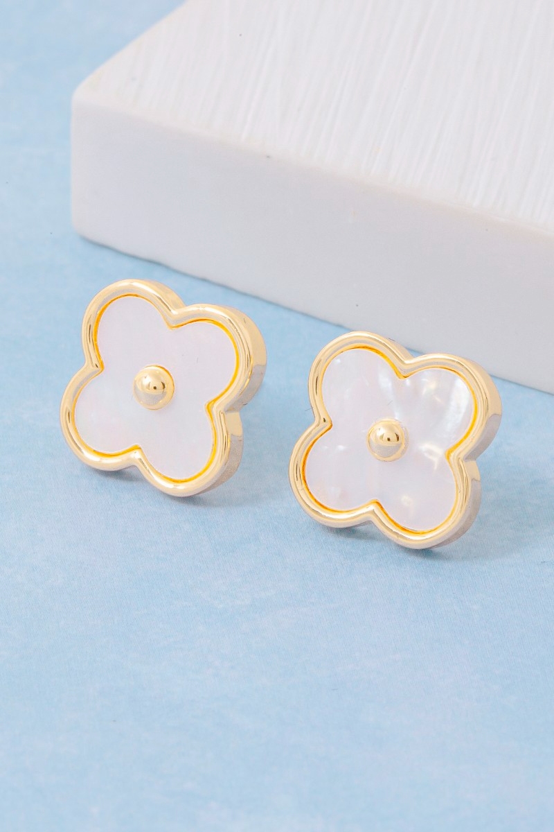 - This pair of stud earrings displays a fashionable mother of pearl clover style. Redefine your look effortlessly with this standout, on-trend piece.