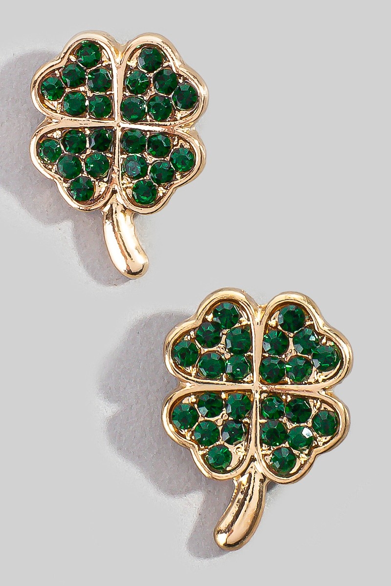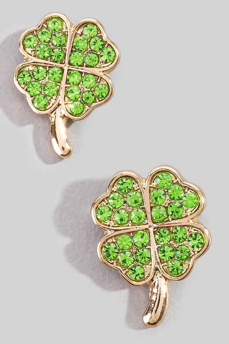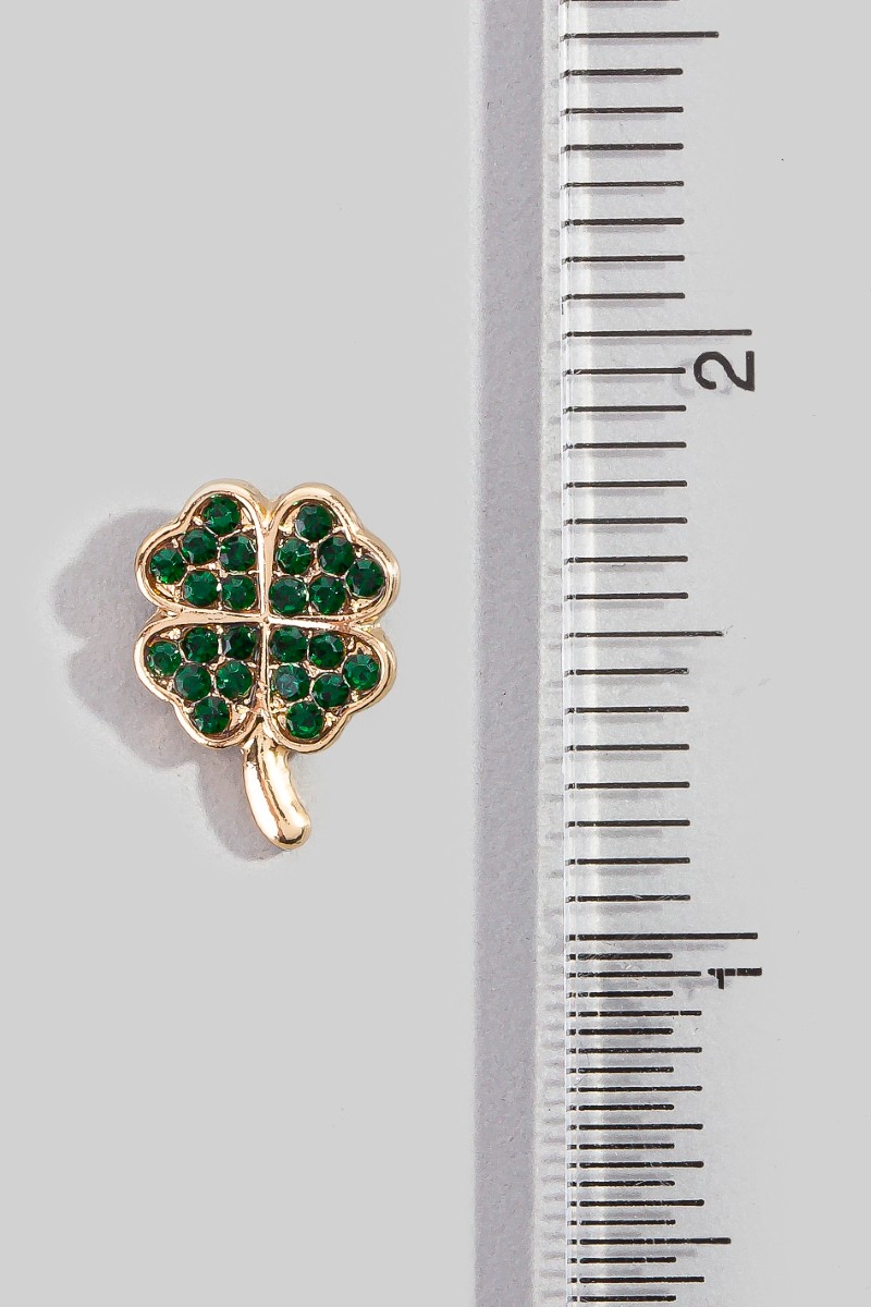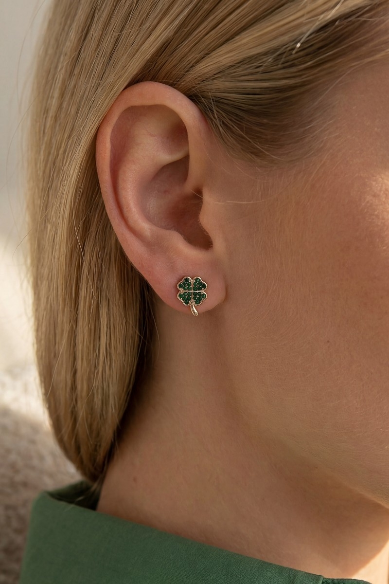 • This pair of stud earrings introduces a unique pave 4 leaf clover style. Unveil a new dimension of sophistication as this pair of stud earrings effortlessly enhances the elegance of your ensemble.