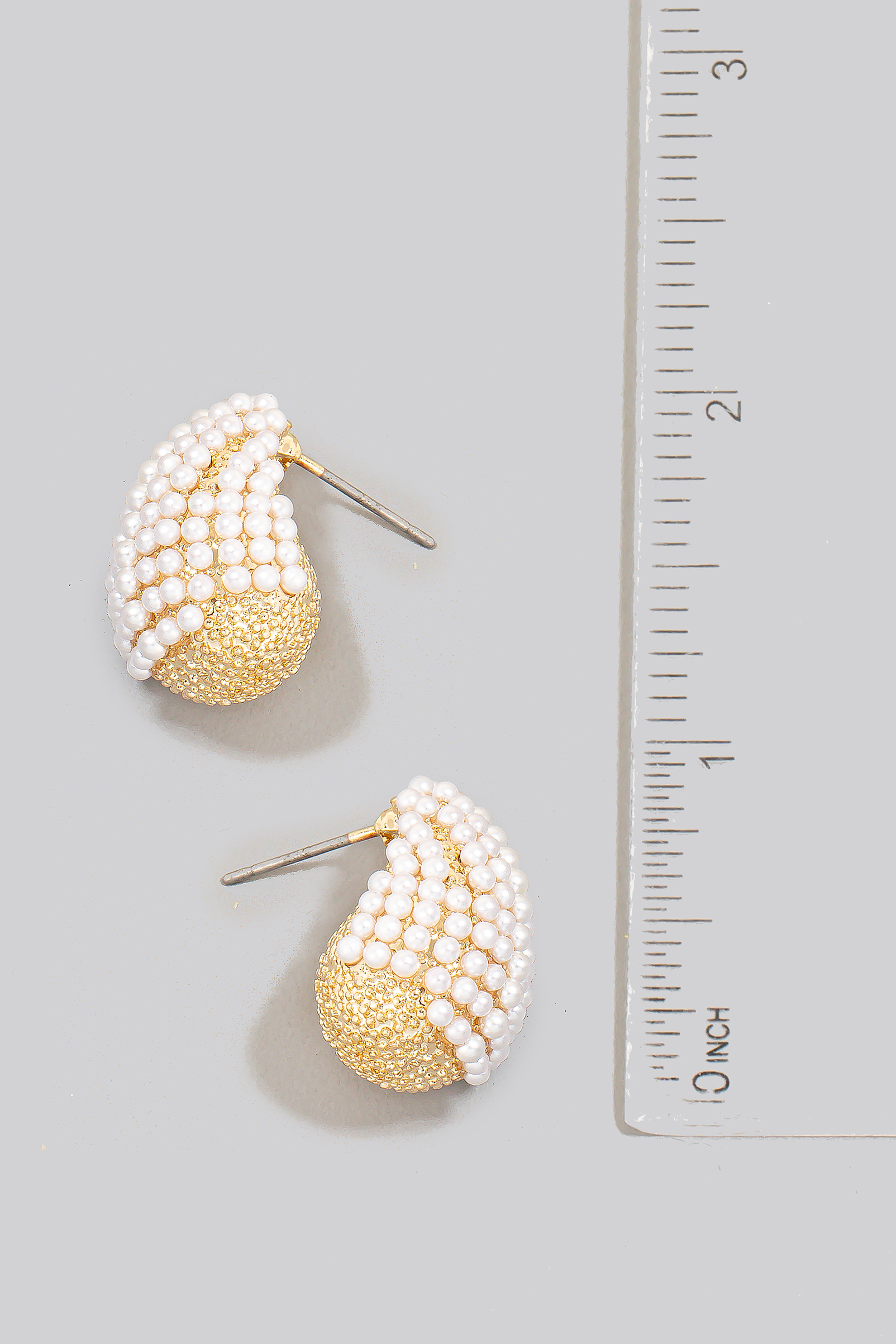• This pair of stud earrings introduces a stunning rough texture and pearl pave tear drop style. Immerse yourself in the world of understated glamour as this pair of stud earrings effortlessly exudes timeless appeal.