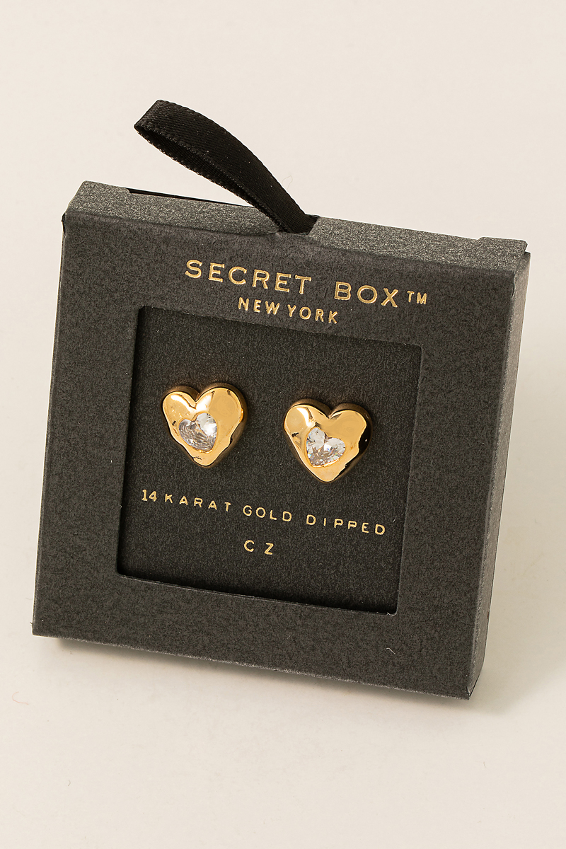 - This pair of stud earrings introduces a stunning secret box heart stud earrings style. Savor the craftsmanship that goes beyond the ordinary, as this accessory effortlessly captivates attention.
