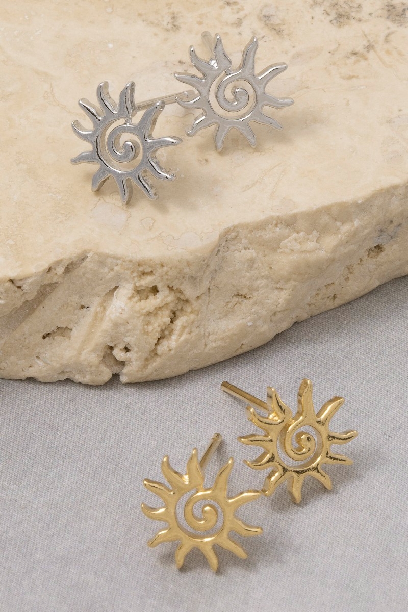 • This pair of stud earrings adds a modern spiral sun style. Experience a subtle blend of modernity and classic charm as this pair of stud earrings effortlessly adorns your ensemble.
